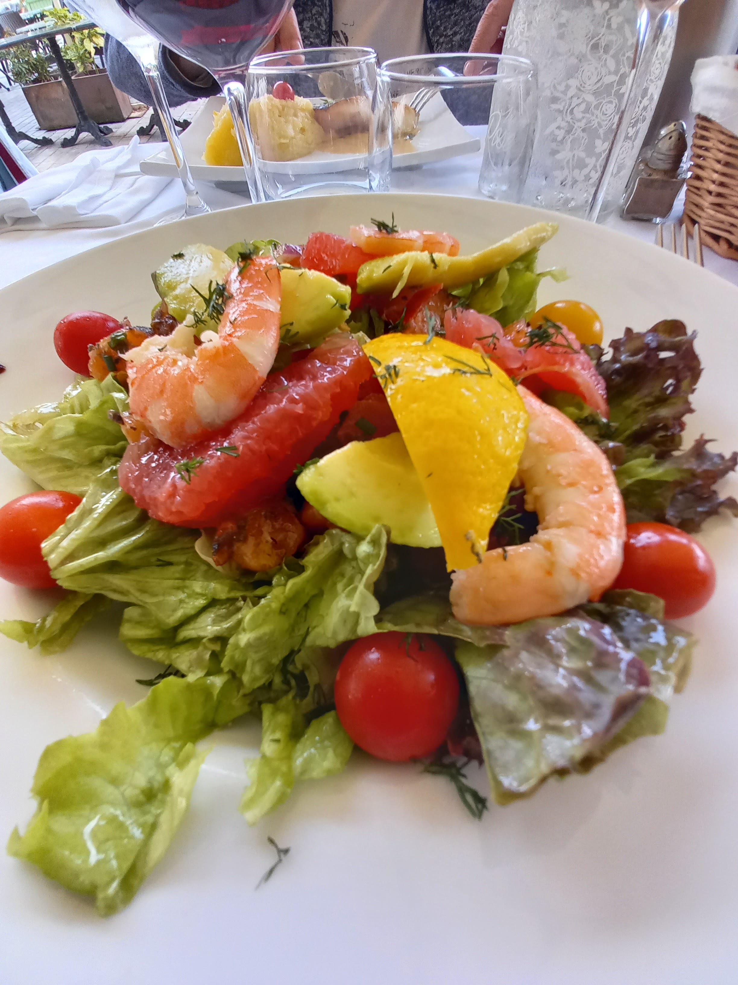 Melon sans goût dommage. Prix assez élevé. Très bon service. Terrasse agréable à part les guêpes.