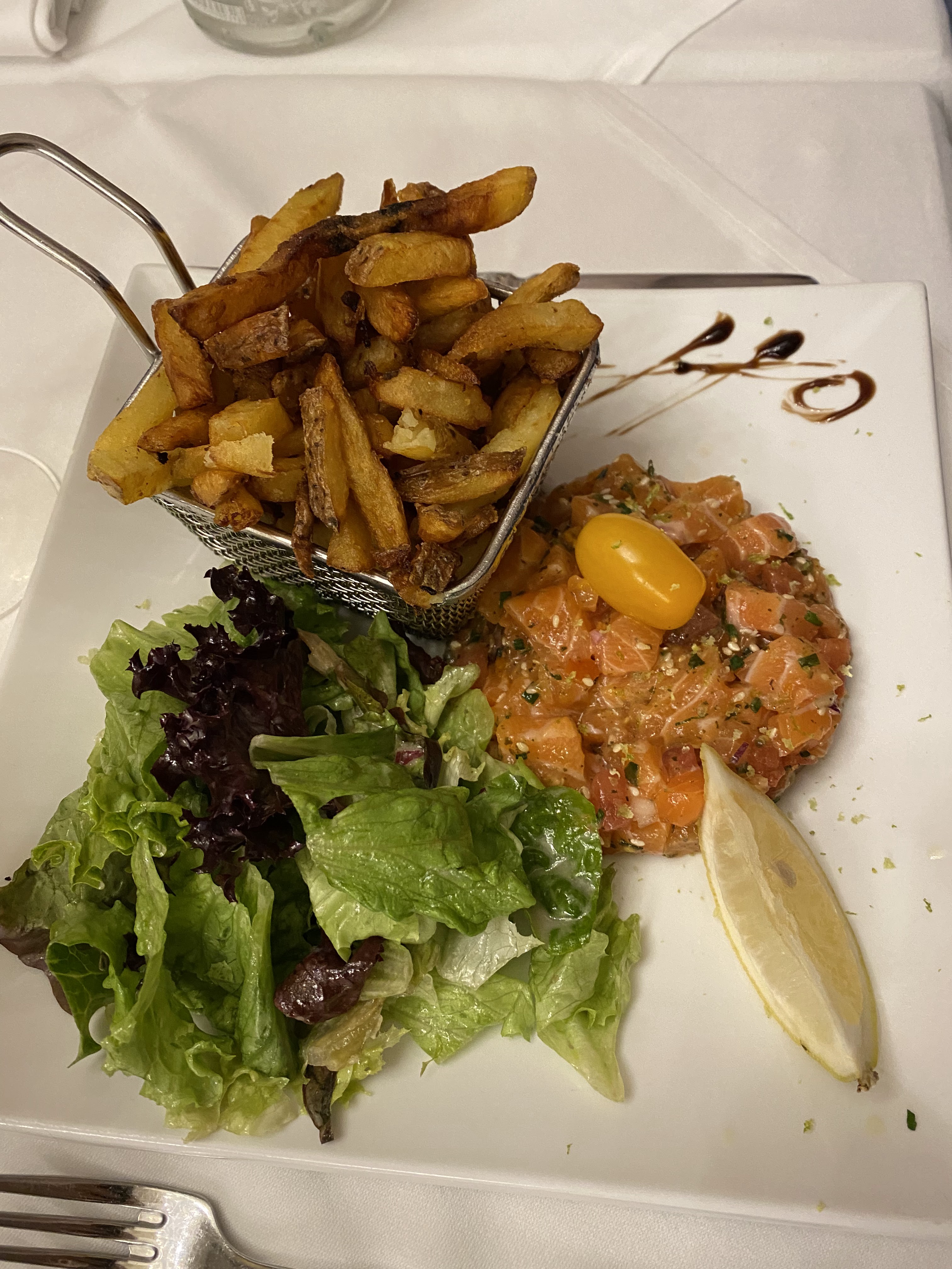 Un service un peu long, des plats qui n’avaient pas un goût incroyable mais c’était un des seuls restaurants ouverts sur la place un dimanche à 17h. Sinon le personnel était assez aimable, par contre il y a peu de choix en terme de poisson