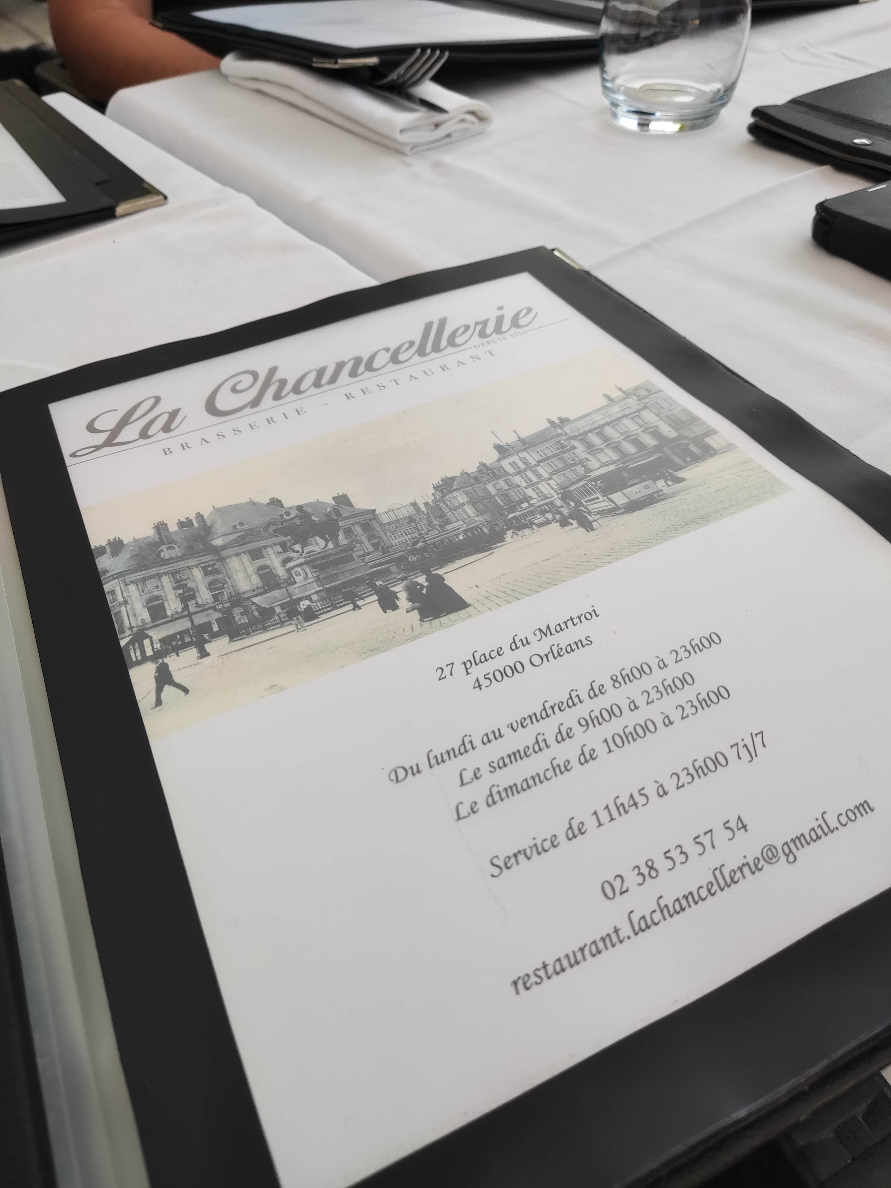 Voici toutes les informations sur le Restaurant français La Chancellerie qui ce trouve au 27 Pl. du Martroi, 45000 Orléans (45). Sur cette fiche vous trouverez les photos, l'adresse, les horaires d'ouverture, le numero de téléphone et les avis clients.Vous pouvez églement rédiger un avis si vous le souhaitez en bas de page.