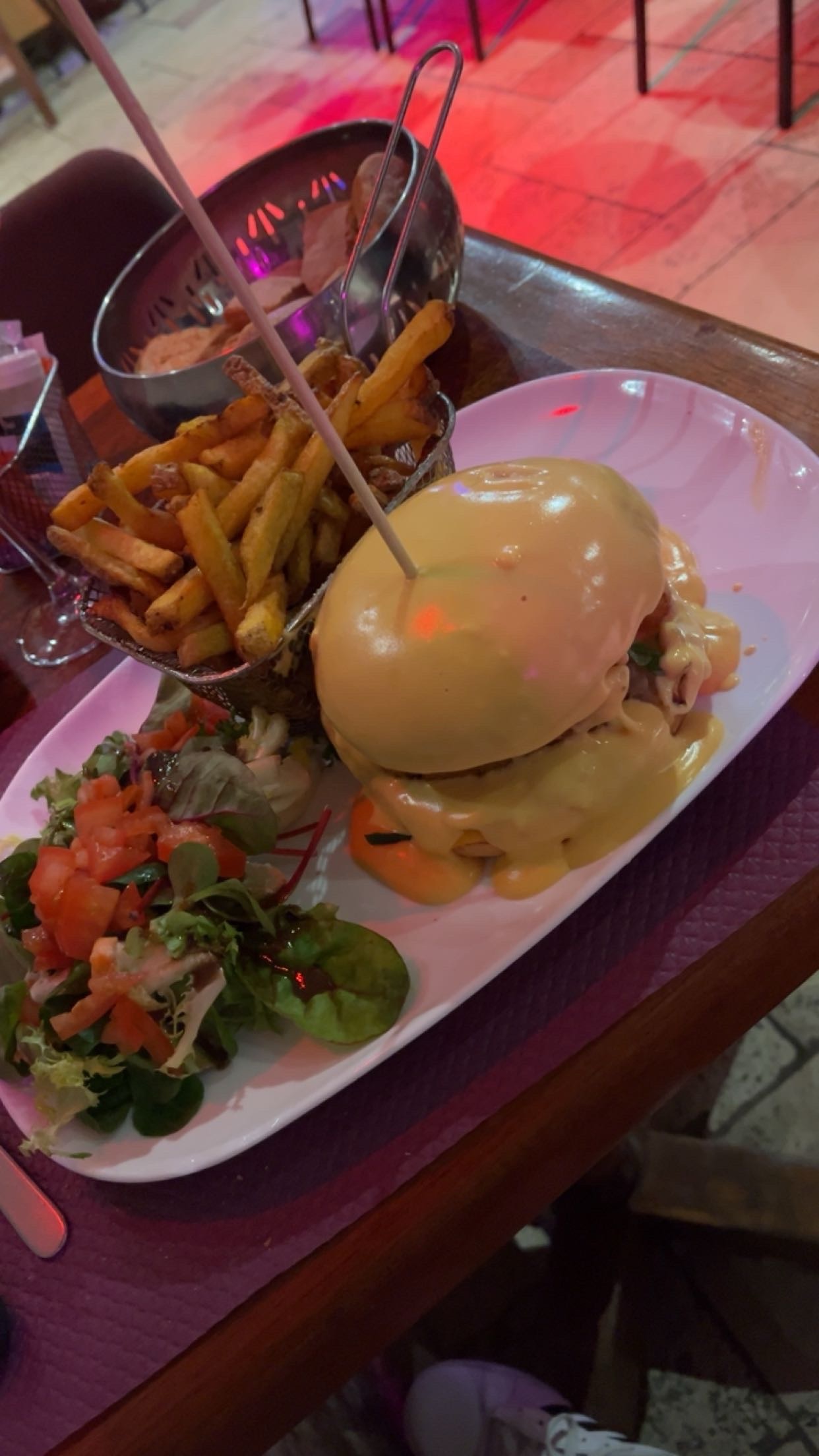 Décevant ! Grosse cantine bien bruyante Le repas aurait pu sauver la mise, mais quelle déception. Tous les plats ne sont pas disponibles sur la carte. Les bières idem, commandé une blonde en remplacement, livrée une ambrée !!!! Burger commandé avec une cuisson à point. La réalité est que cela ressemble plus à un steak tartrate !!! Sympa les trognons de tomates en déco; Les frites sont ignobles, toutes couvertes d’œils bien noir. Je ne parlerai pas du karaoké inaudible. Bref, je n’ai pas trouvé un seul point positif sur cette enseigne.