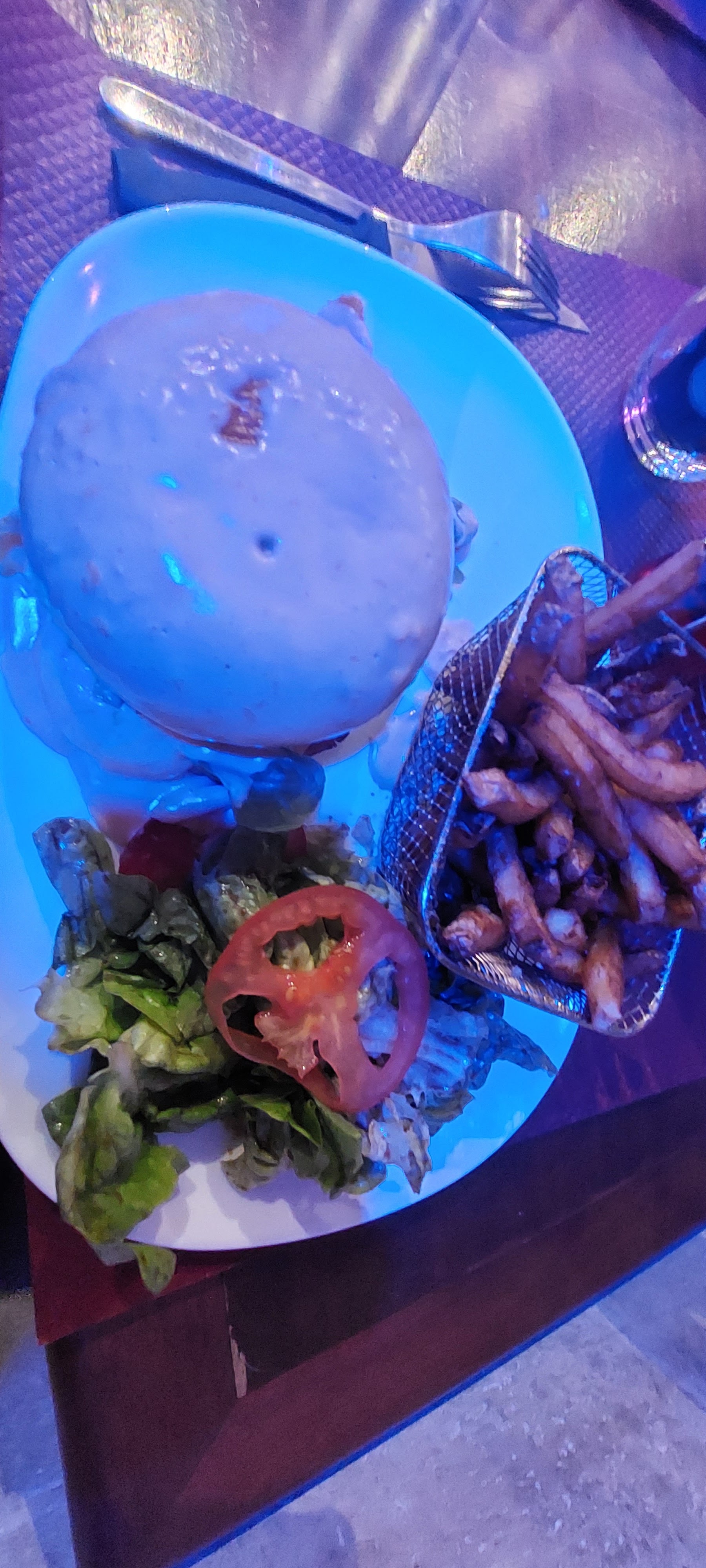 Je vous conseille ce restaurant Vous ne serez pas déçu de manger à ce restaurant J’ai demandé du fromage sur ce hamburger et le cuisinier alors à écouter Il m’a mis un tout petit peu de fromage sa se voit 😁 Tout le personnel est super sympa et tout