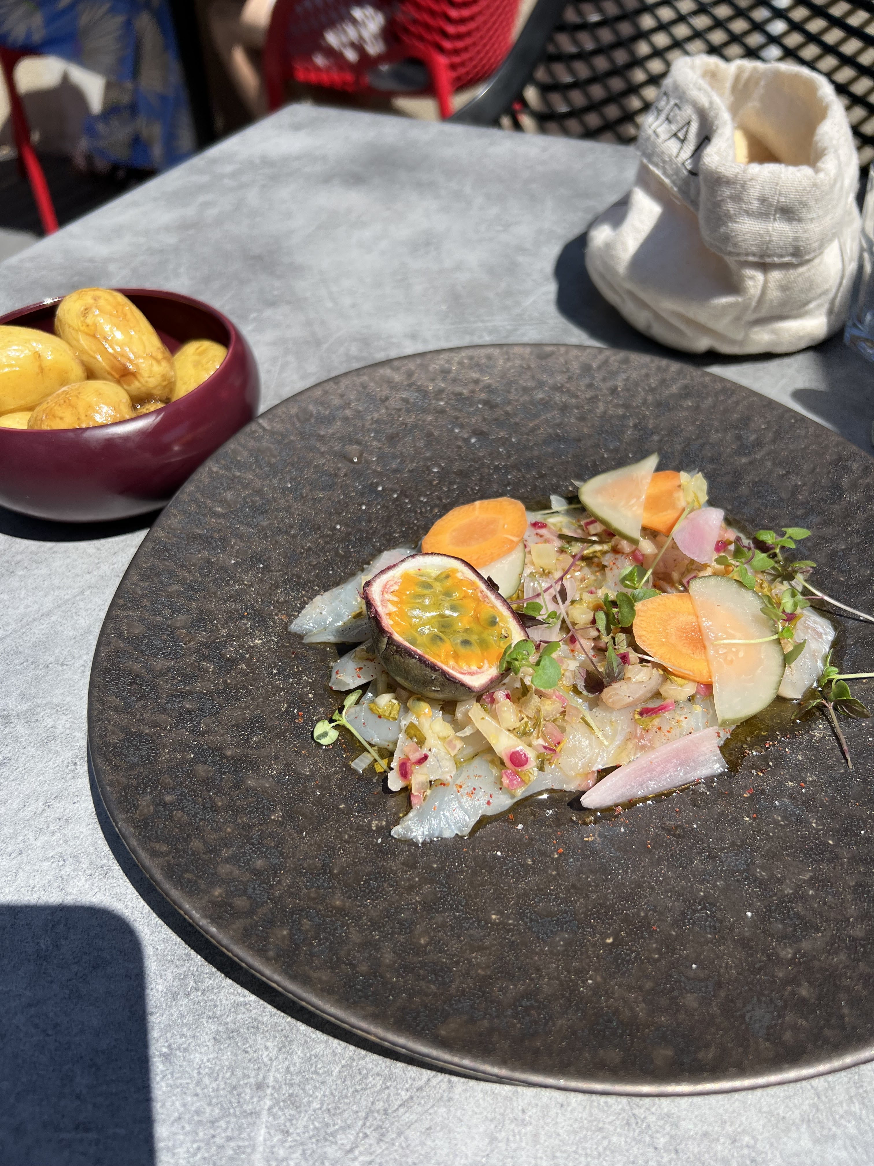 Très belle découverte à deux pas de chez moi, il y a eu un changement de propriétaire. J ai pris un céviché de poisson du jour, à l’occurrence aujourd’hui du loup, c’était excellent, pour une personne avec une petite faim ou à compléter avec un désert ou une entrée à partager à deux….