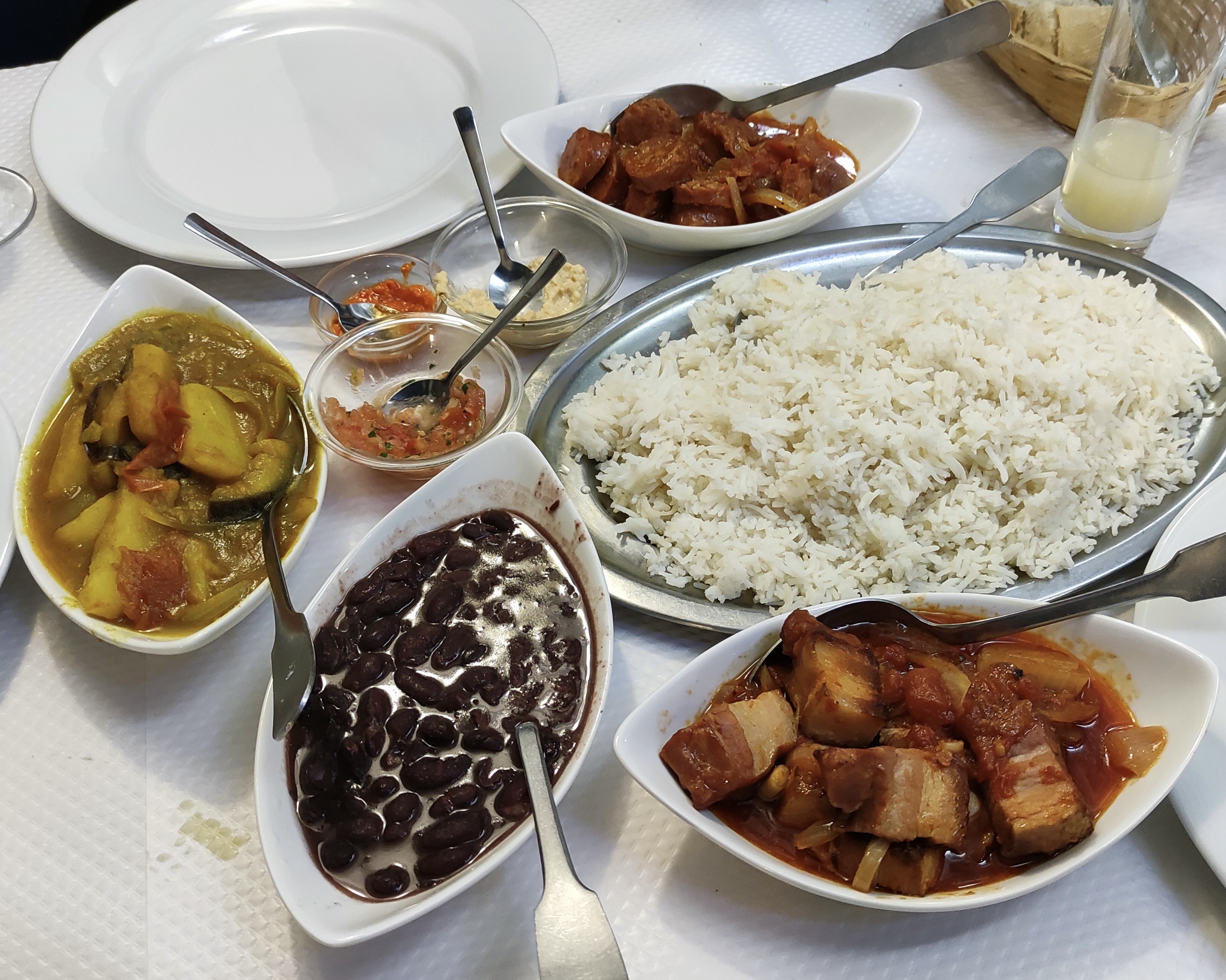 Ça fait presque 10 ans que j'habite dans le quartier et autant de temps que je voulais essayer ce restaurant. J'ai regretté de ne pas venir plus tôt. C'est vraiment très à mon goût, facile à manger. J'ai pris le porc fumé à la sauce tomate, c'est une tuerie. Le riz est toujours accompagné d'une soupe d'haricots rouges, en mangeant tous les 3 (porc, haricots et riz) ensembles je sentais l'énergie tropicale. Les sauces pimentées sont mises à part pour doser à son goût. Il faut faire attention car le piment est très fort, même pour une personne qui mange souvent épicé. La purée de cacahouètes est mon favorie. Je reviendrai certainement !