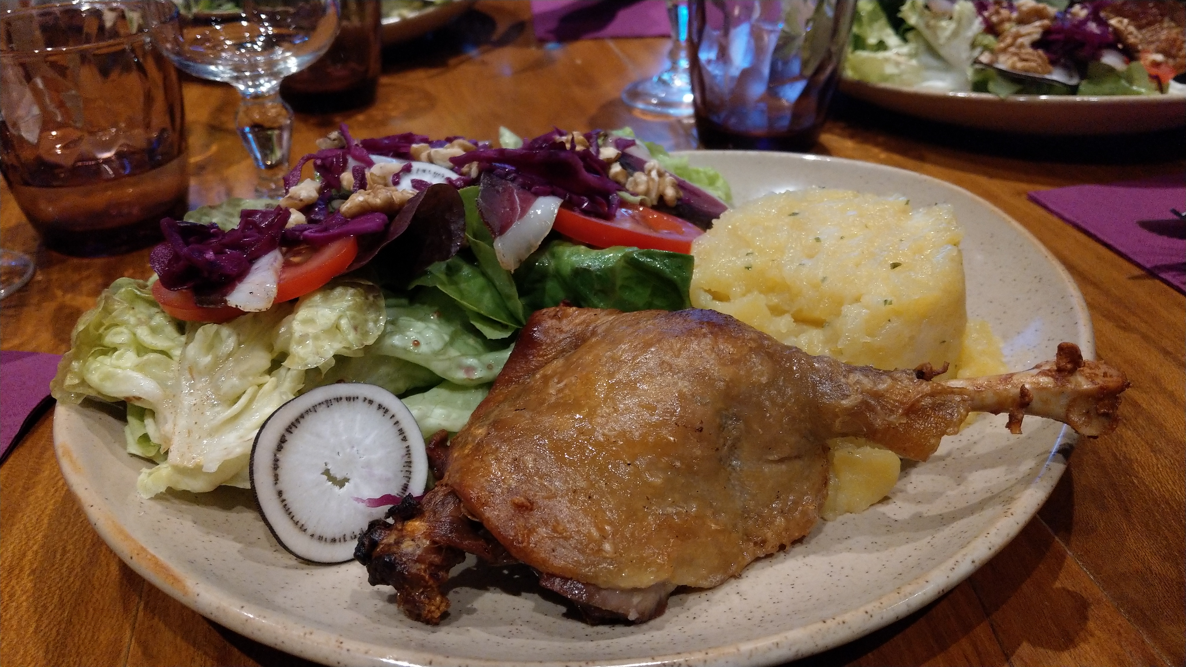 Un peu déçu, du menu avec une salade de gésiers, pas trop fournie en gésiers, et un gâteau au noix réchauffé ?