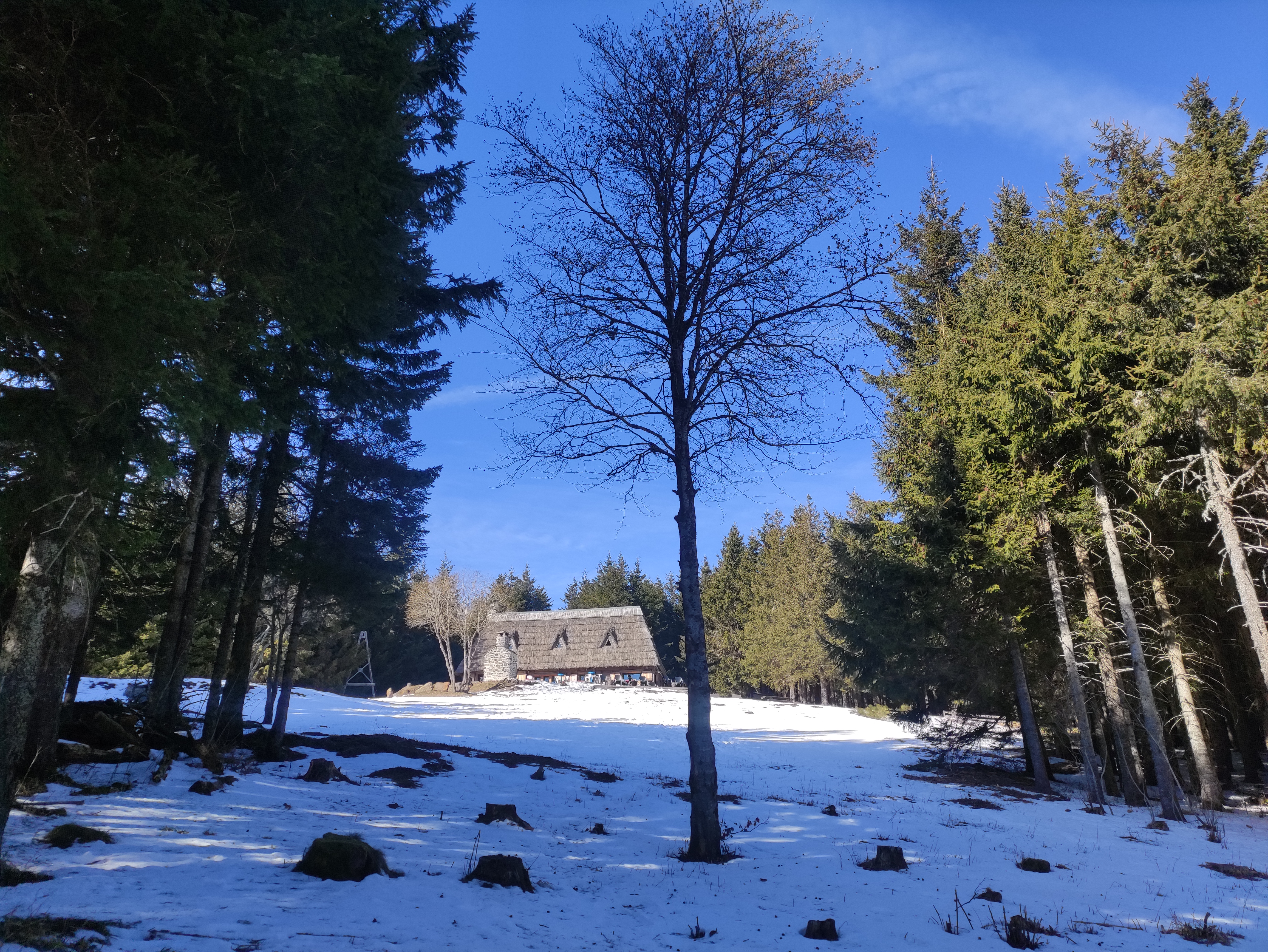 Quoi de mieux que cette chaumière au bout d une longue randonnée ? C est au moment où l on en voit pas la fin qu on aperçoit un signe de vie avec un bout de granite et une colonne de fumée tout droit sortie de la forêt. Un cadre magique, le serveur au top, une cuisine bien dans le thème. Je conseil le café de la chaumière et la verveine du pays. On reviendra !