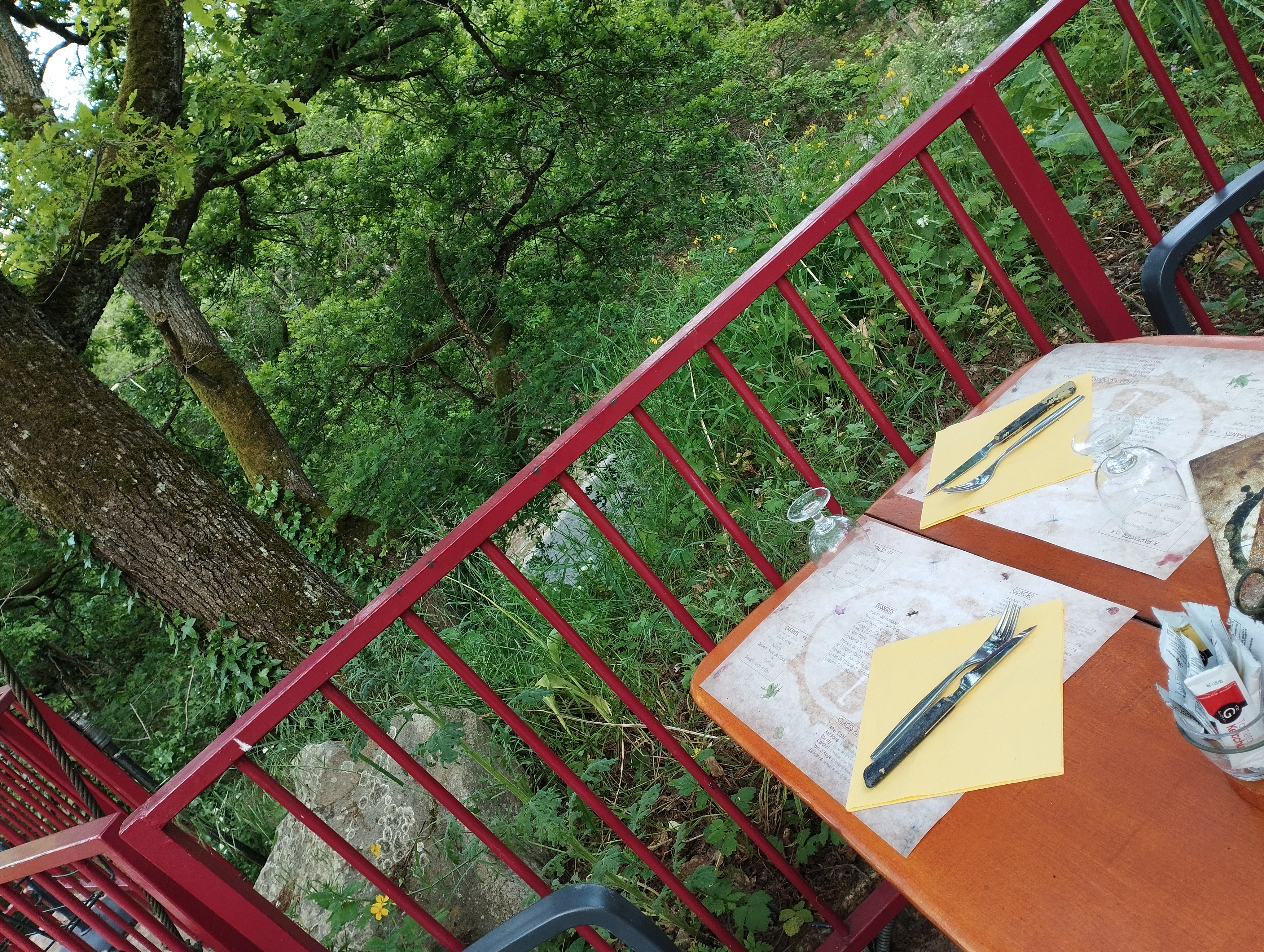 Restaurant très sympa perché dans les arbres avec une terrasse pleine de jardinières fleuries très sympa quand il fait beau. La carte est simple et correcte même si elle mériterait d être renouvelée.