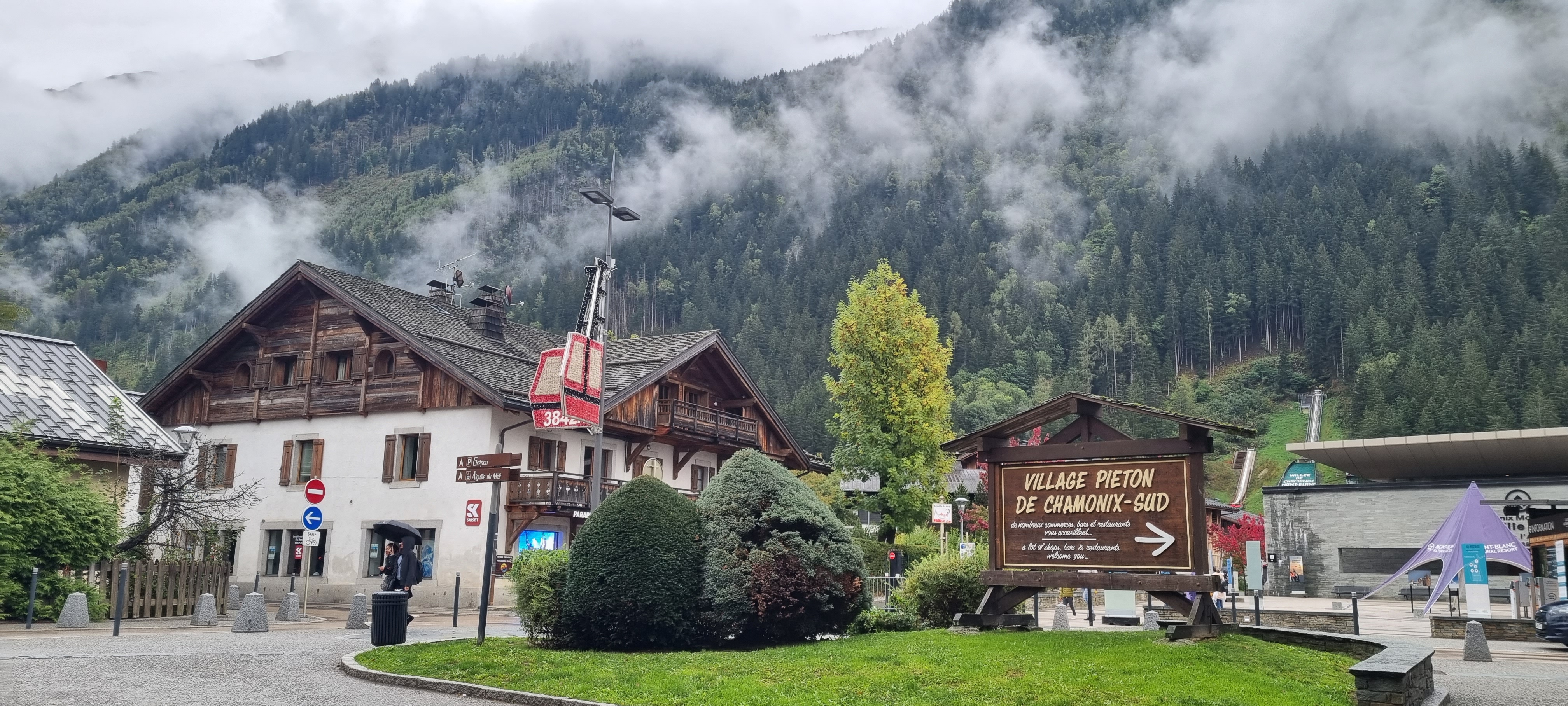 A 15 minutes à pied du centre de Chamonix. Personnel très sympathique, bonne nourriture, superbe chambre d'hôtel pour quelques nuits, avec une vue fantastique. Excellent point de départ pour des promenades autour du Mont Blanc. Dommage que la circulation passe si près.