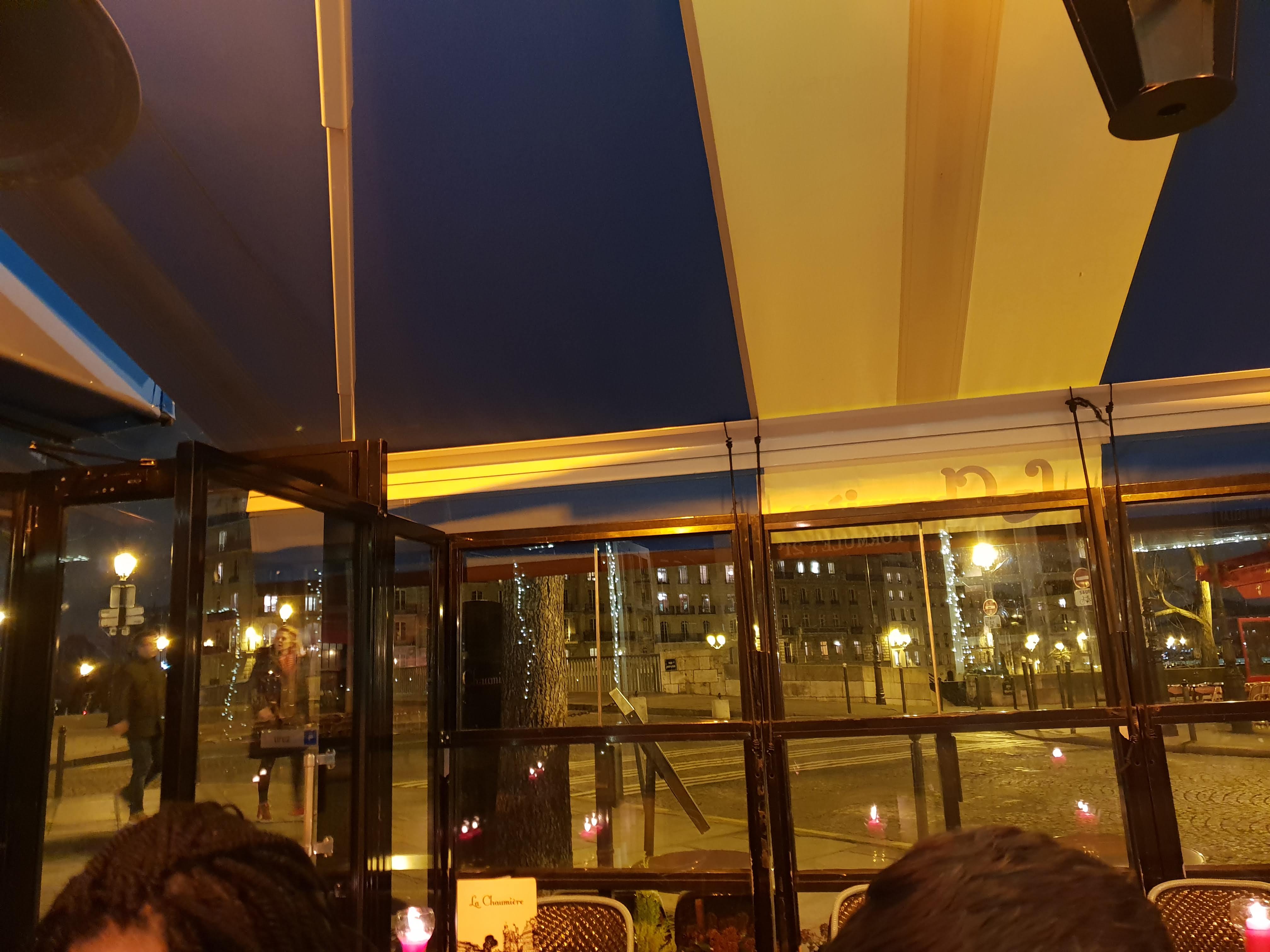 Vu imprenable sur la Seine et la cathédrale de notre dame . Bonne accueil , bon service . Dommage que la carafe d'eau ne ma pas été posé sur la table . À part cela c'était très bien 👍