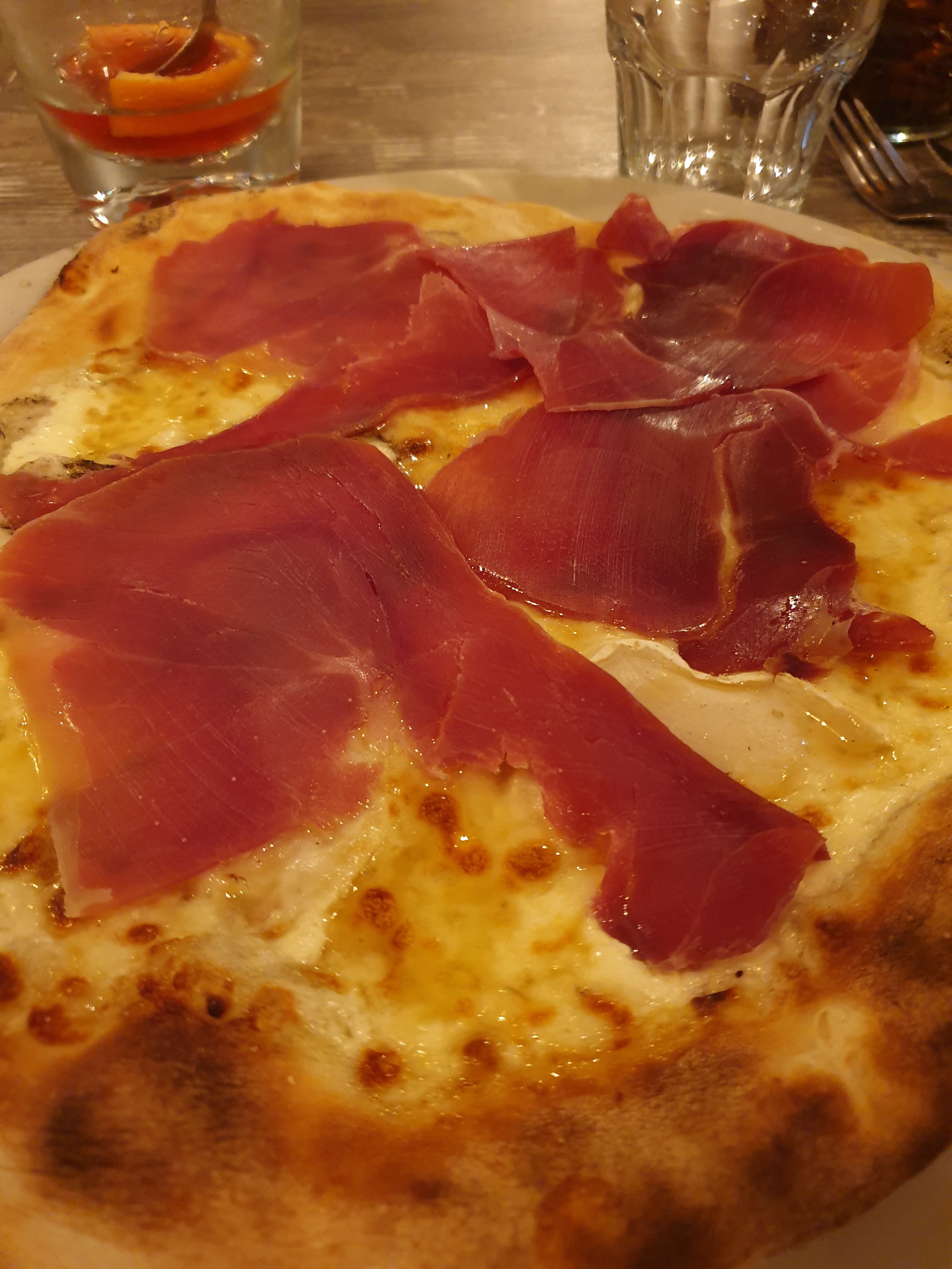 Très bonne pâte ou de bon produits sont cuit dessus et ai vrai feu de bois . - moins le serveur pense être mon meilleur pote je t'envois ça là. ..... bref sinon c'est très bien