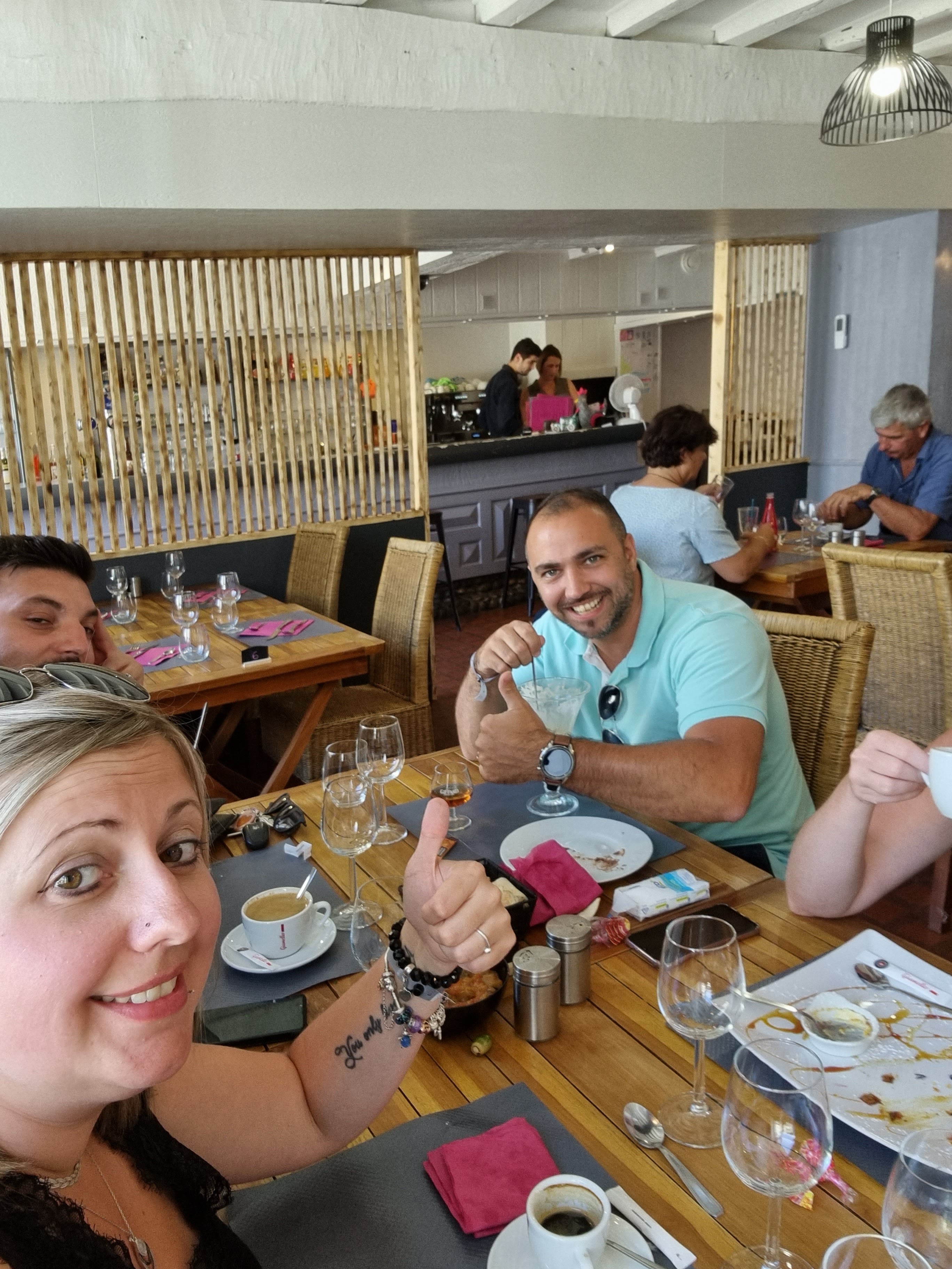 Super .. rien a redire , les patrons adorables, le sourire 😃 😃 plus plus cela fait du bien dans notre profession. Les plats une tuerie rien a redire fidèles aux promesses. Je recommande mille fois.. au.plaisir de vous retrouver lors de nos.prochaines vacances