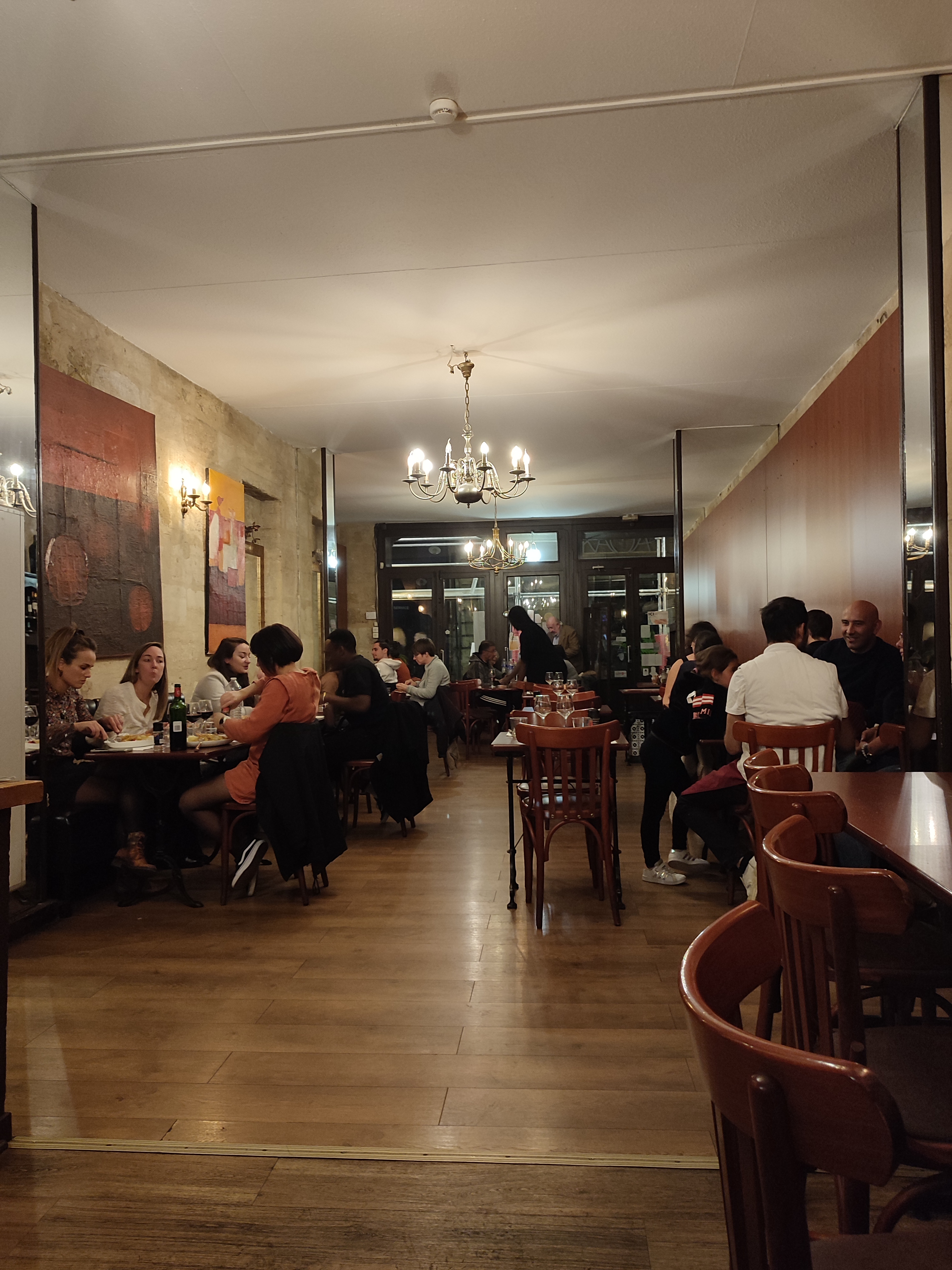 Très bon restaurant Bordelais. Malheureusement victime de son succès, les espaces de chacun y sont relativement étroit. Deplus la salle est assez mal agencée ce qui accentue cette impression. Nous avons tout de même passé un agréable repas ! Excellent rapport qualité prix. Cuisine bien exécutée. Large choix de vin, la carte est en fait une vitrine où l'on se sert directement avant qu'un serveur ne vienne l'ouvrir. Je recommande.