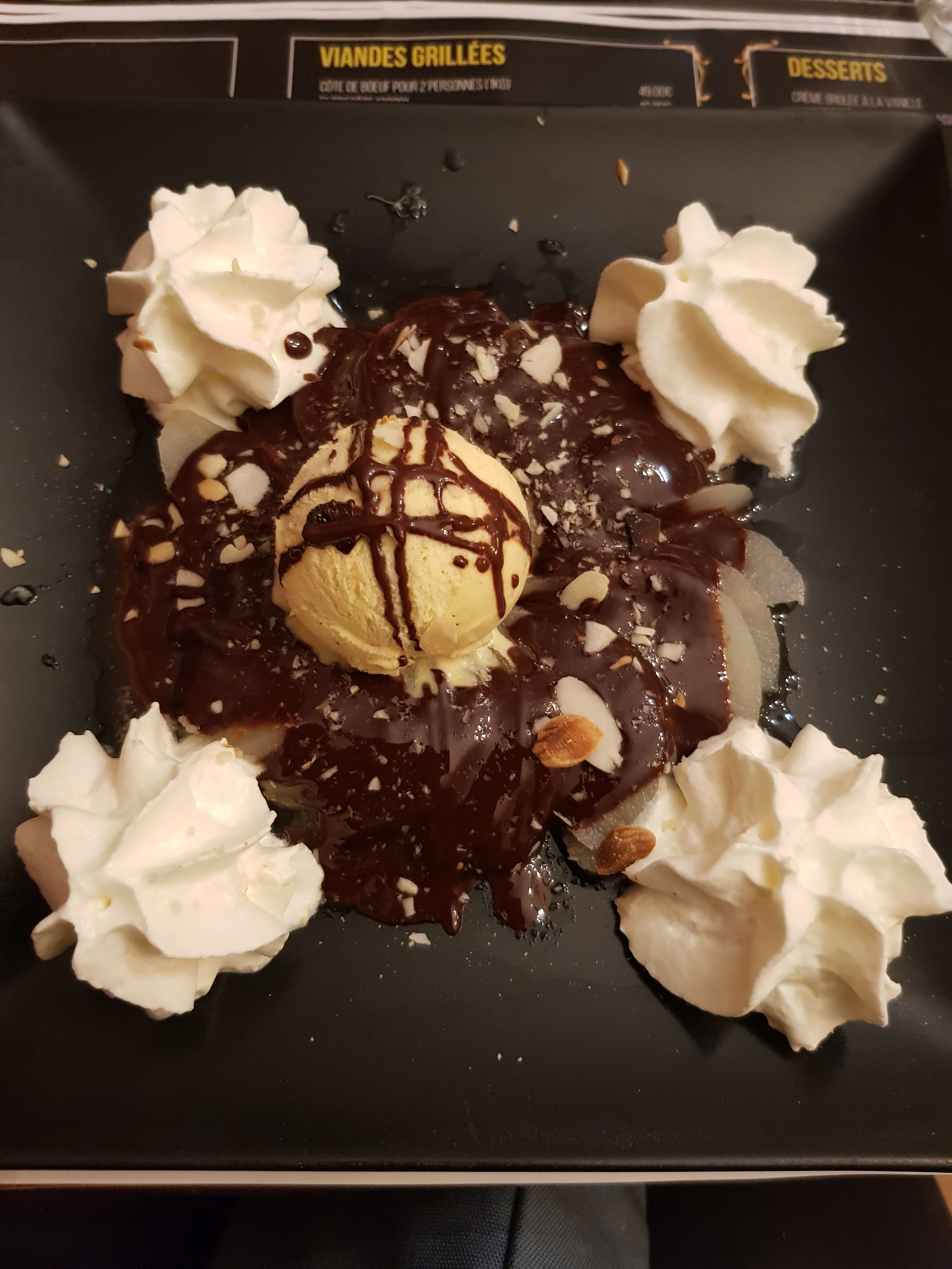Nous avons été dîner en couple un jeudi soir, une carte trop étoffé a mon gout, mais les plats nous on attiré aux premiers abords. Un foie gras en entrée, pas extra. Une entrecôte bonne, des frites pas terrible. Des profiteroles avec un biscuit sec, pas agréable. On peut pas dire qu'on s'est régalé. Le service correct mais sans plus, je garde pas un bon souvenir de ce restaurant.