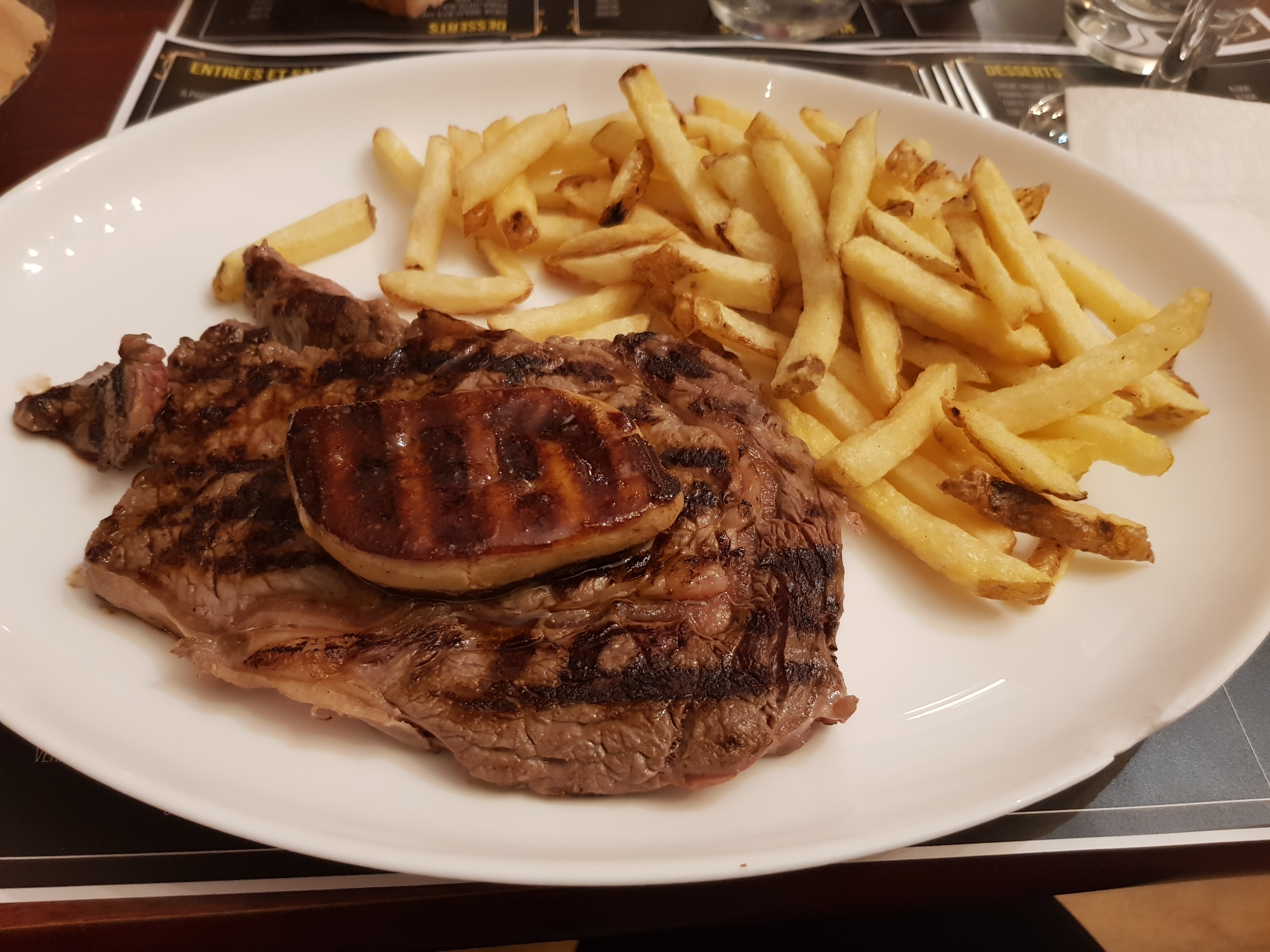 Menú très intéressant! Très satisfaite de ce repas, juste dommage qu'il n'y est pas de salade avec l'entrecôte mais possibilité de la demandée à part! ^^