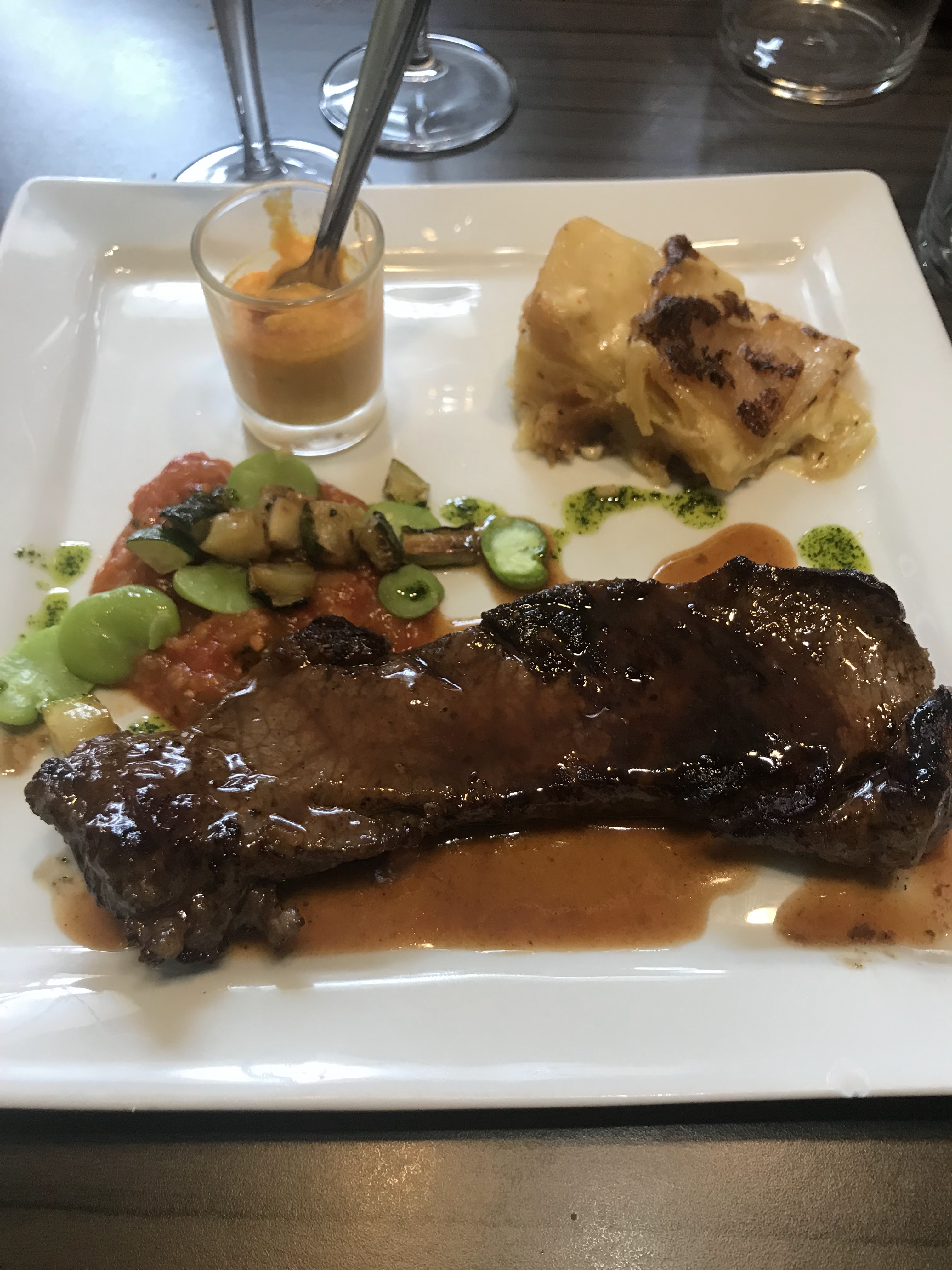 Repas et cadre agréables. J ai trouve la garbure tres bonne... manque peut etre un peu de variété dans l accompagnement des différents plats, mais c était bon. Acceuil sympathique