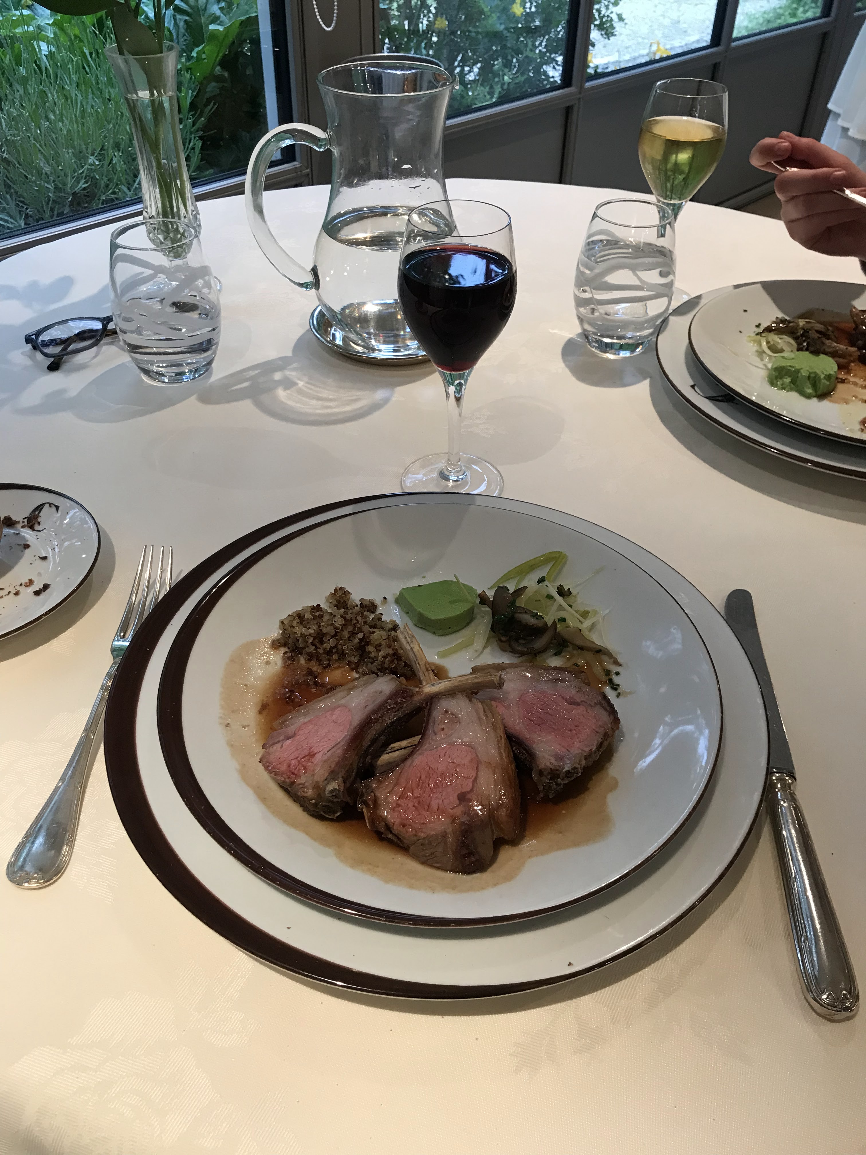 Ambiance sympathique et agréable, vue sur le jardin. Nous avons pris le menu à 58e. Un service de qualité avec de belle prestations. Il y a eu un peu d attente au début, mais la qualité de la cuisine vaut cette patience. Il est préférable d arriver de bonne heure, le dîner s est étalé sur 2h30. Une famille s est permise de partir en râlant car le service n était pas suffisamment rapide, il ne faut pas aller dans ce type de restaurant avec de jeunes enfants ou si l on est pressé, ou on echange avec l équipe, on s exprime sans avoir cette attitude désagréable. Il faut comprendre la pénurie de main d œuvre qui a nécessairement un impact sur les clients.