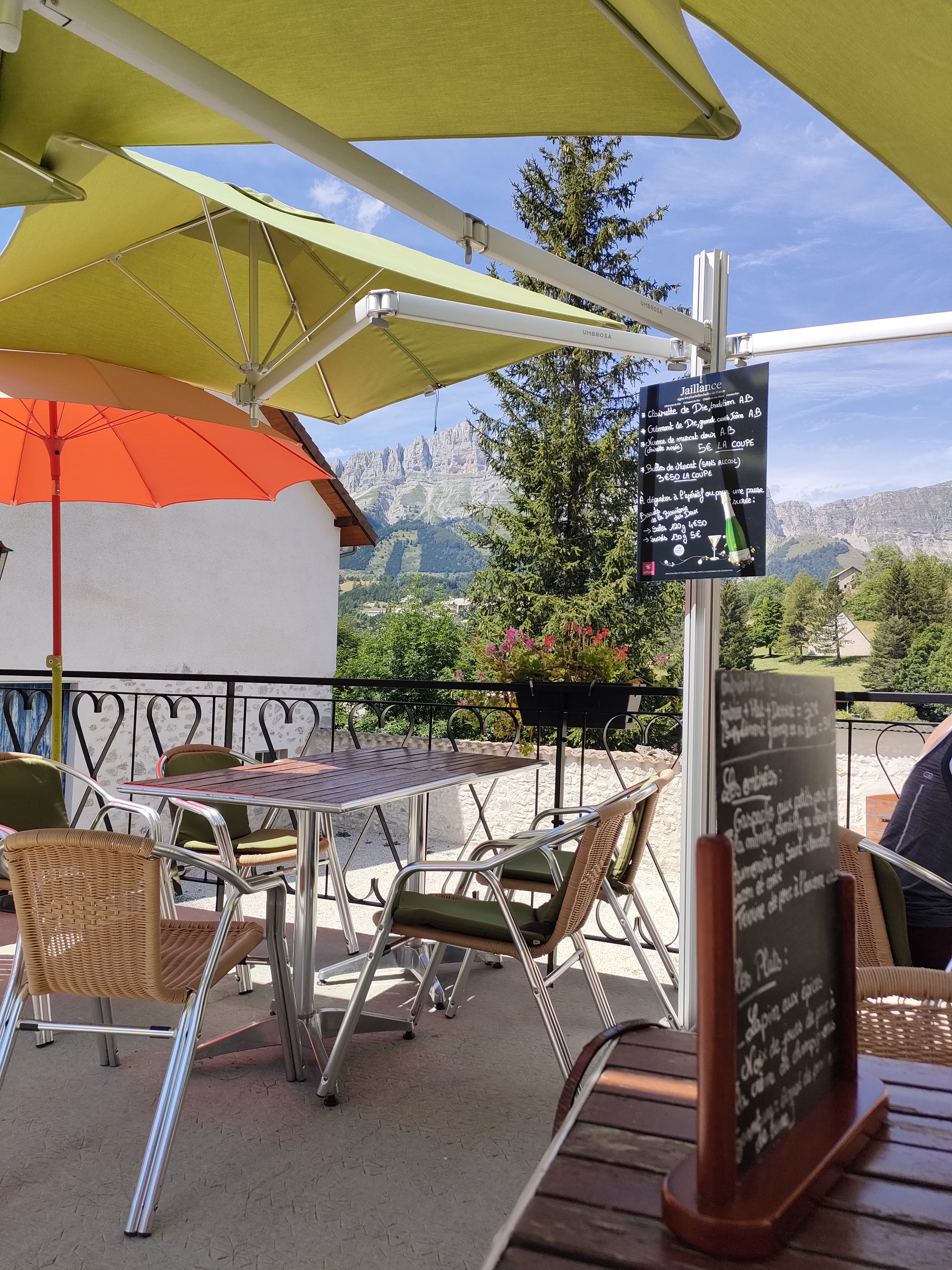 Très agréable pour boire un verre après une rando sur le plateau du Vercors. Il y a même des coussins sur les fauteuils, un confort de plus en plus rare et pourtant tellement appréciable quand on porte jupe ou short.
