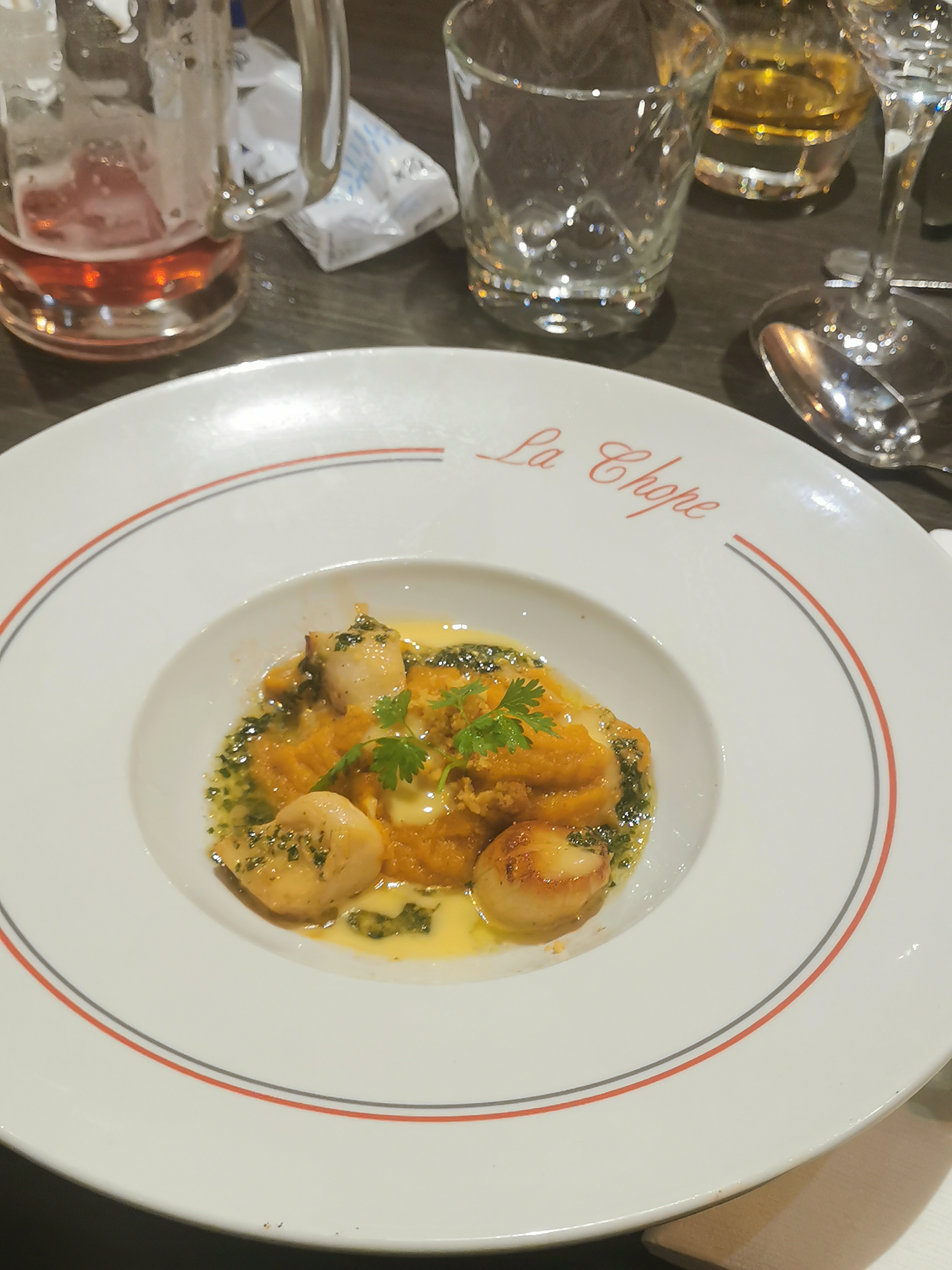 De passage à Rennes, On a fais le choix de réserver chez La Chope on a pas regretter notre choix. De notre arriver à l'addition tout c'est très bien passer. L'œuf mollet avec sont velouté de cèpe est juste un délice le faux-filets aussi avec le lieu noir est sont risotto au curry. Les profiteroles un classique... surtout avec sont craquelin. Félicitations que ce sois coter salle et cuisine 🙂
