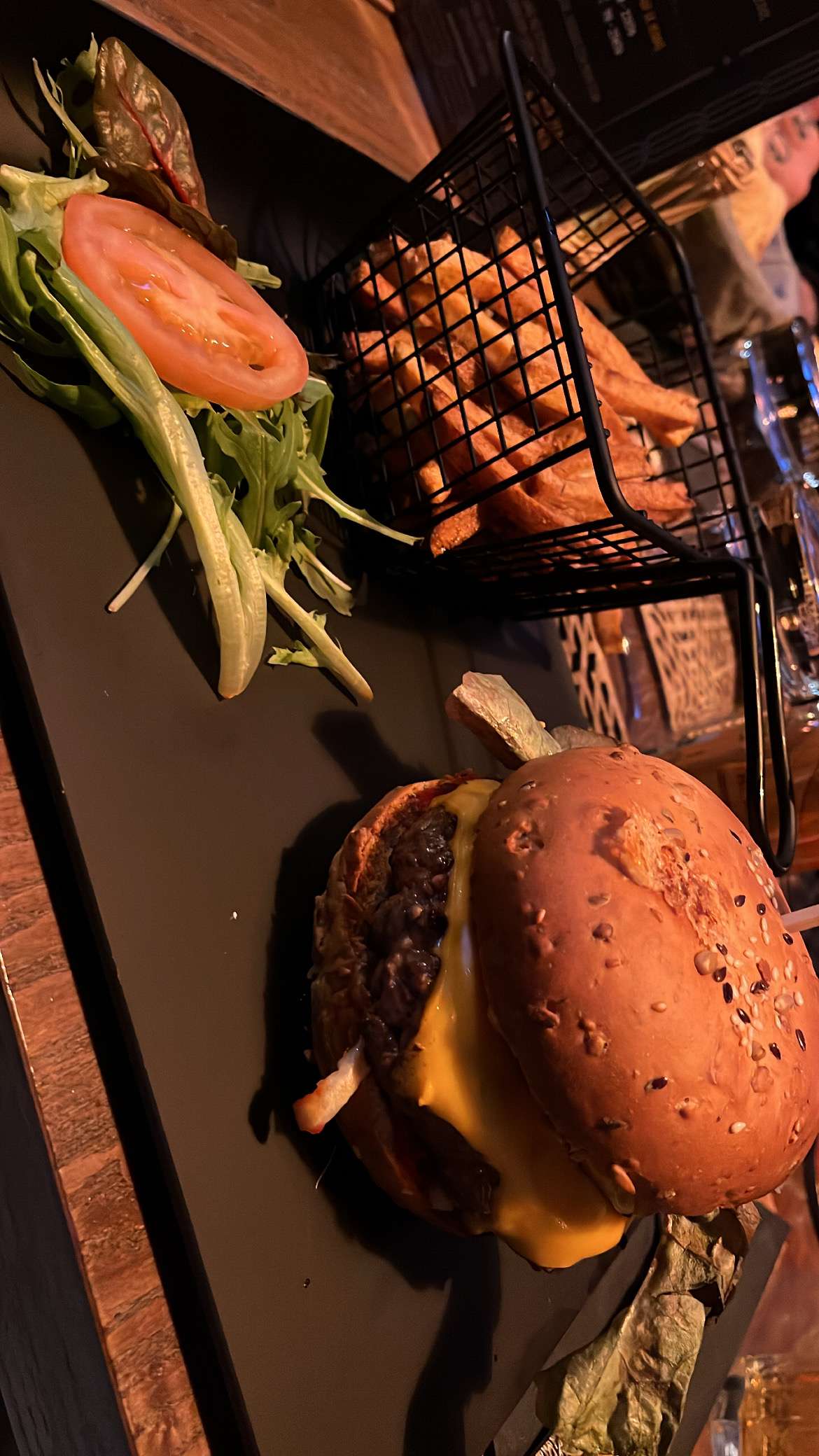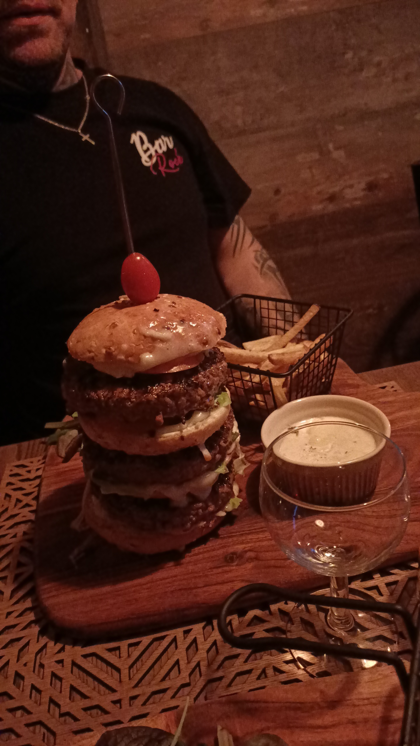 Burger excellent et frites bien assaisonnées ! La prochaine fois ont réservera une table pour profiter de l'ambiance de taverne 😉