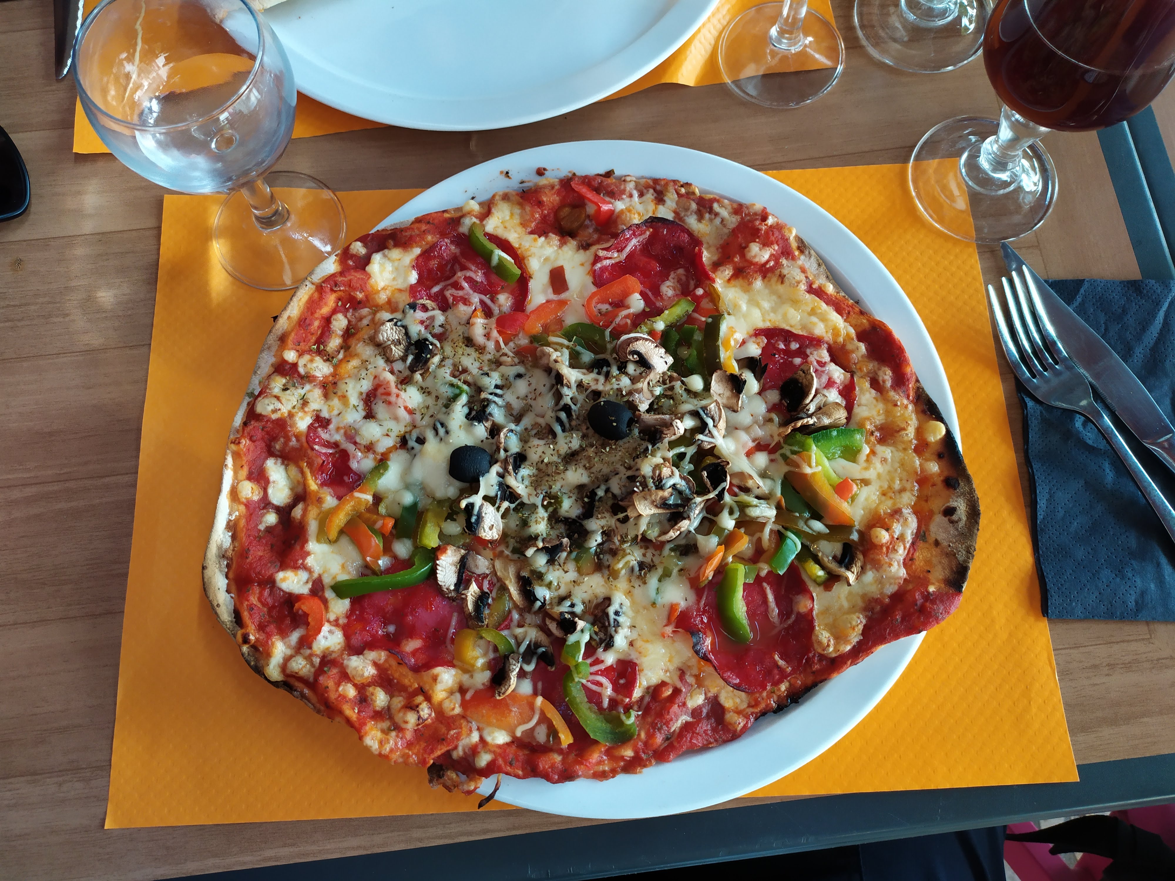 Seule pizzeria du secteur qui a bien voulue nous servir malgré l'heure tardive. Pizza a emporter : excellente ! Pâte fine, garniture copieuse. Merci. Nous ne sommes que des touristes mais ça donne envie de revenir !
