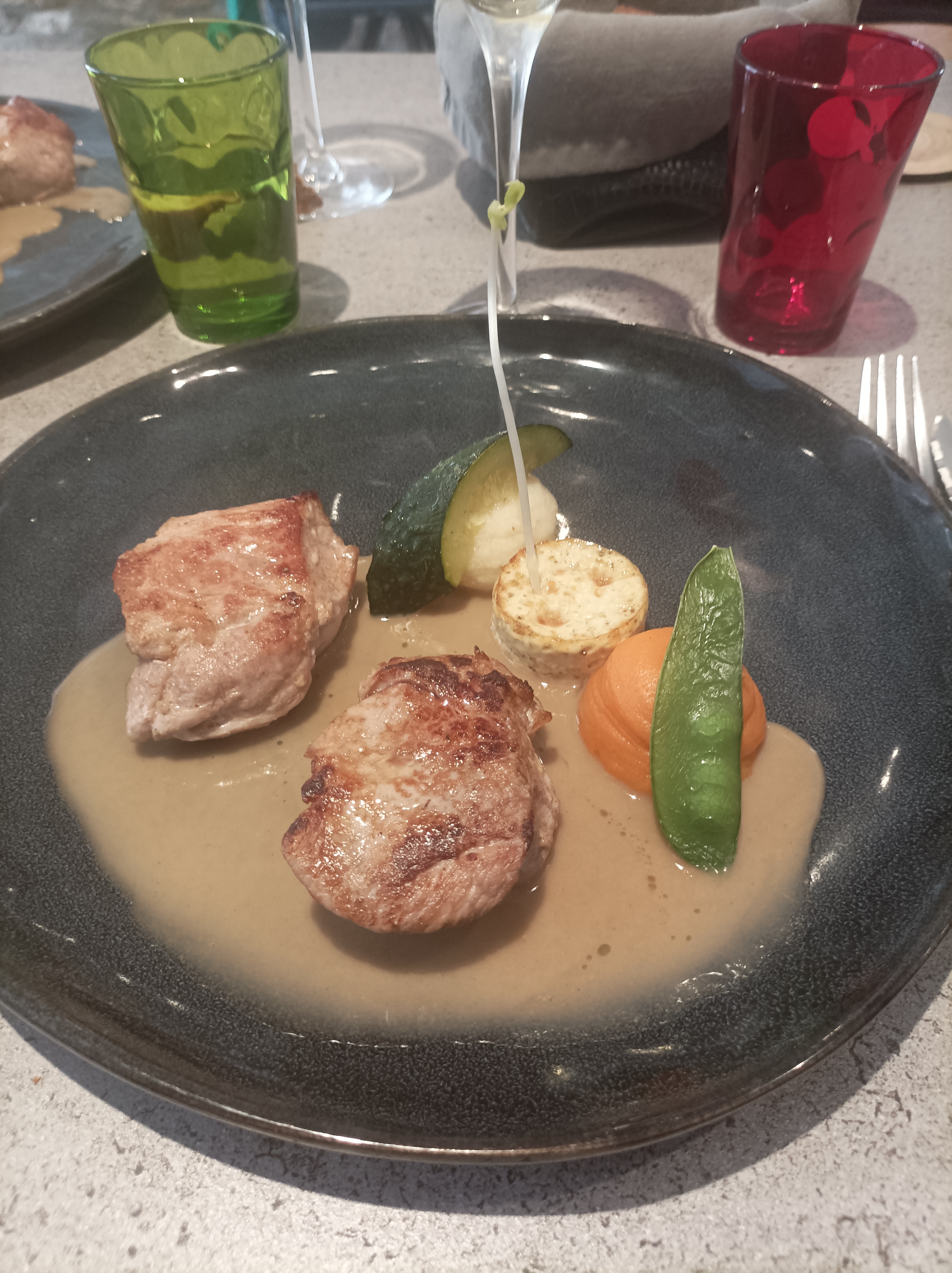 Repas excellent, les plats sont bien présentés, les quantités sont bien adaptées. Service irréprochable, très à l'écoute du client Tarif en rapport avec la qualité Toilettes très propres Mesures sanitaires respectées Ce restaurant vaut le détour et je le recommande