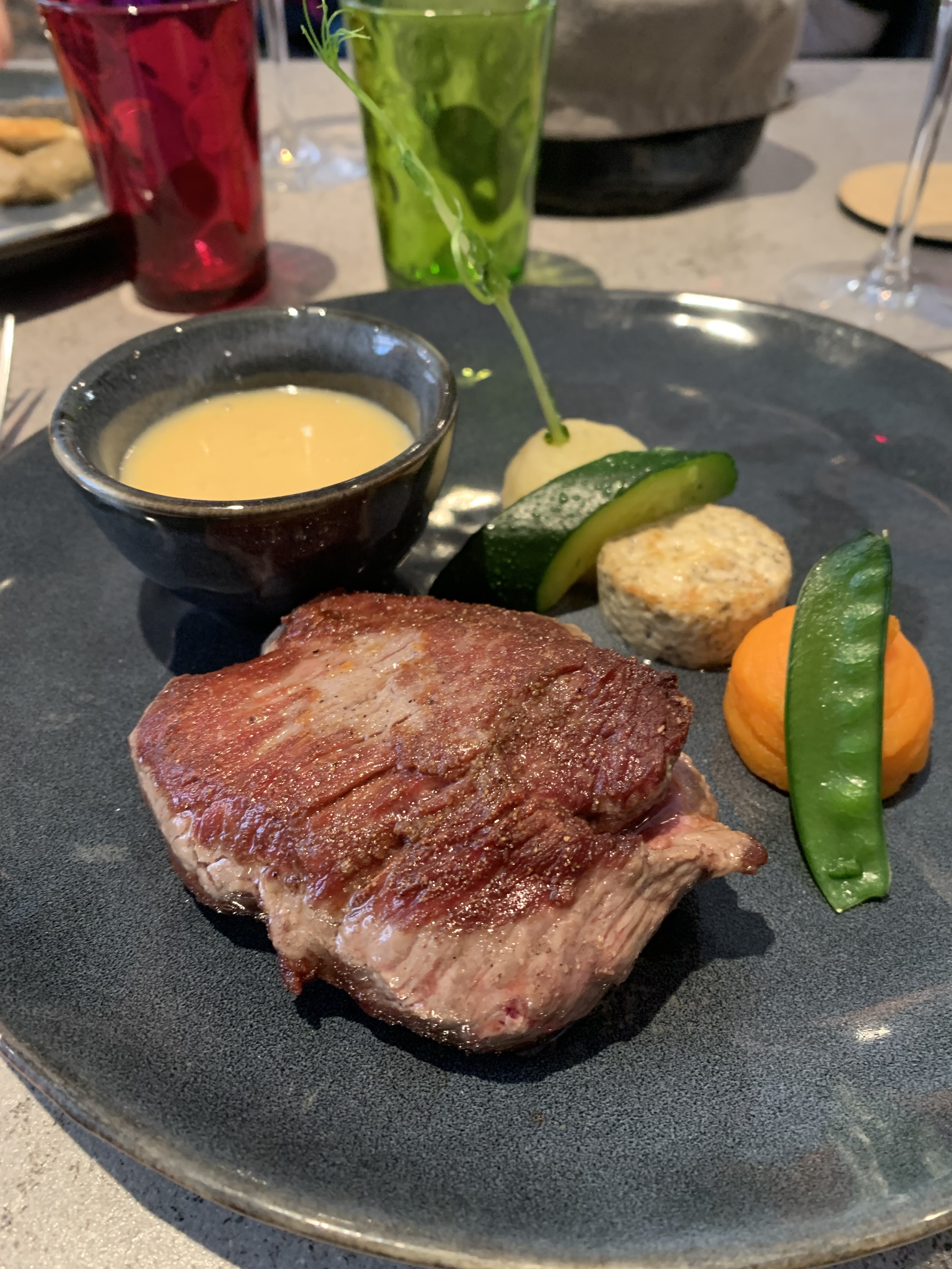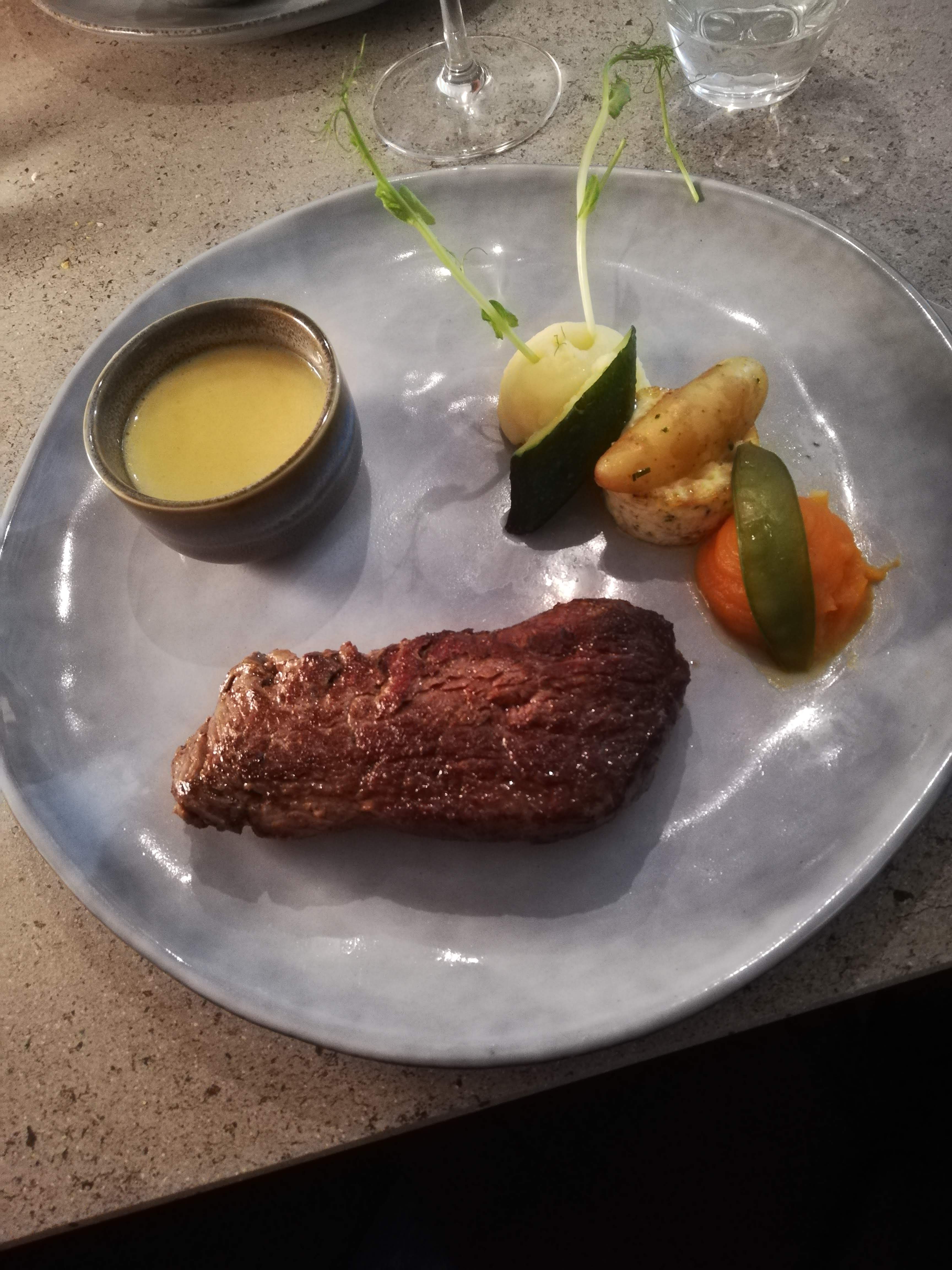 Service sympathique, cuisine bien , bonne maîtrise des cuissons ( tant le boeuf que le bar) mais qui demande à se réinventer un peu, le tout ne démérite pas, mais manque un peu d'inspiration.