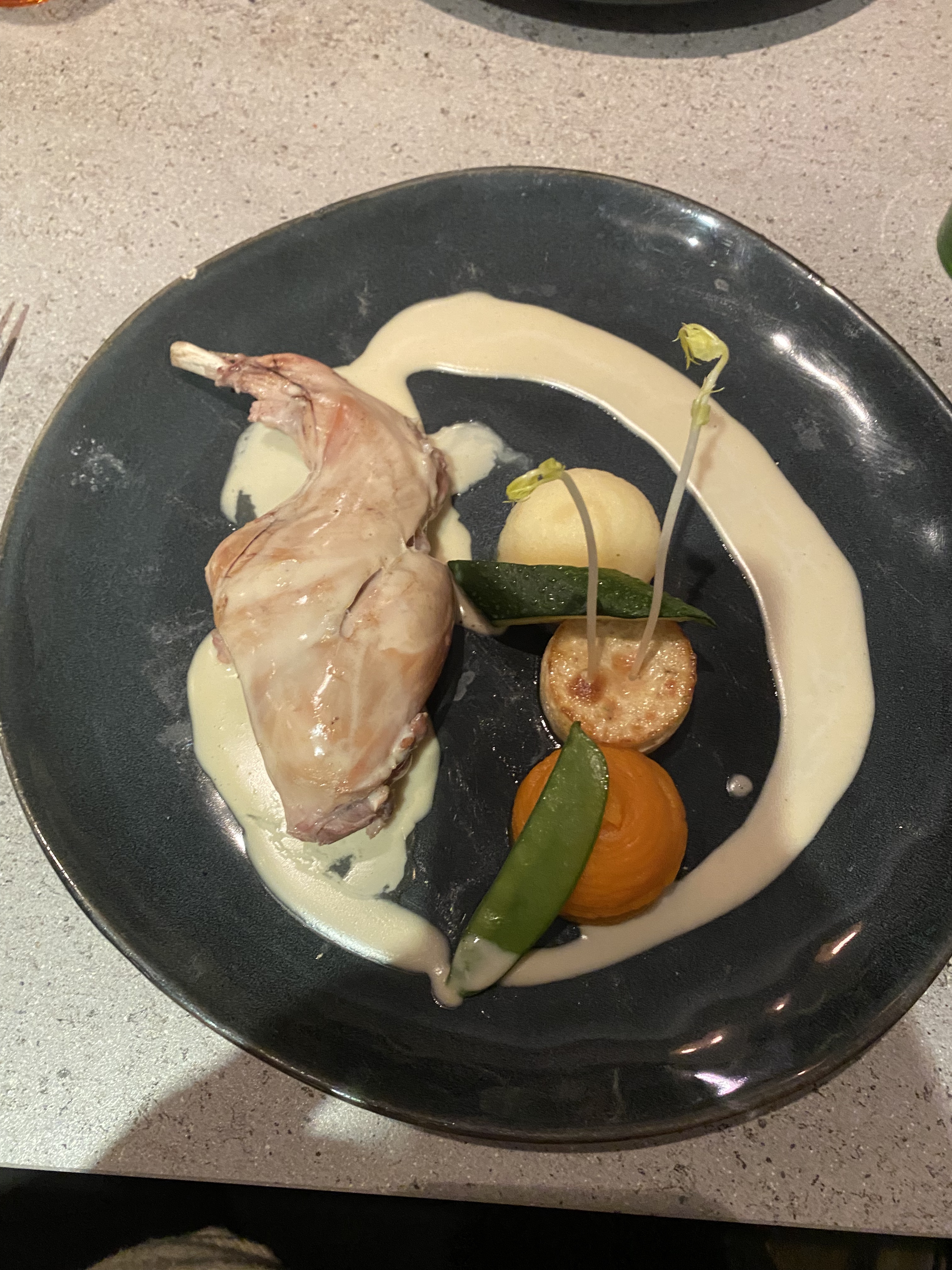 Très belle découverte De l'entrée au dessert tout était délicieux La cuisson basse température du lapin restera mémorable 👌 Le service impeccable et l'accueil très chaleureux Très bon rapport qualité prix Si vous recherchez un bon restaurant abordable je vous le recommande vivement 😉