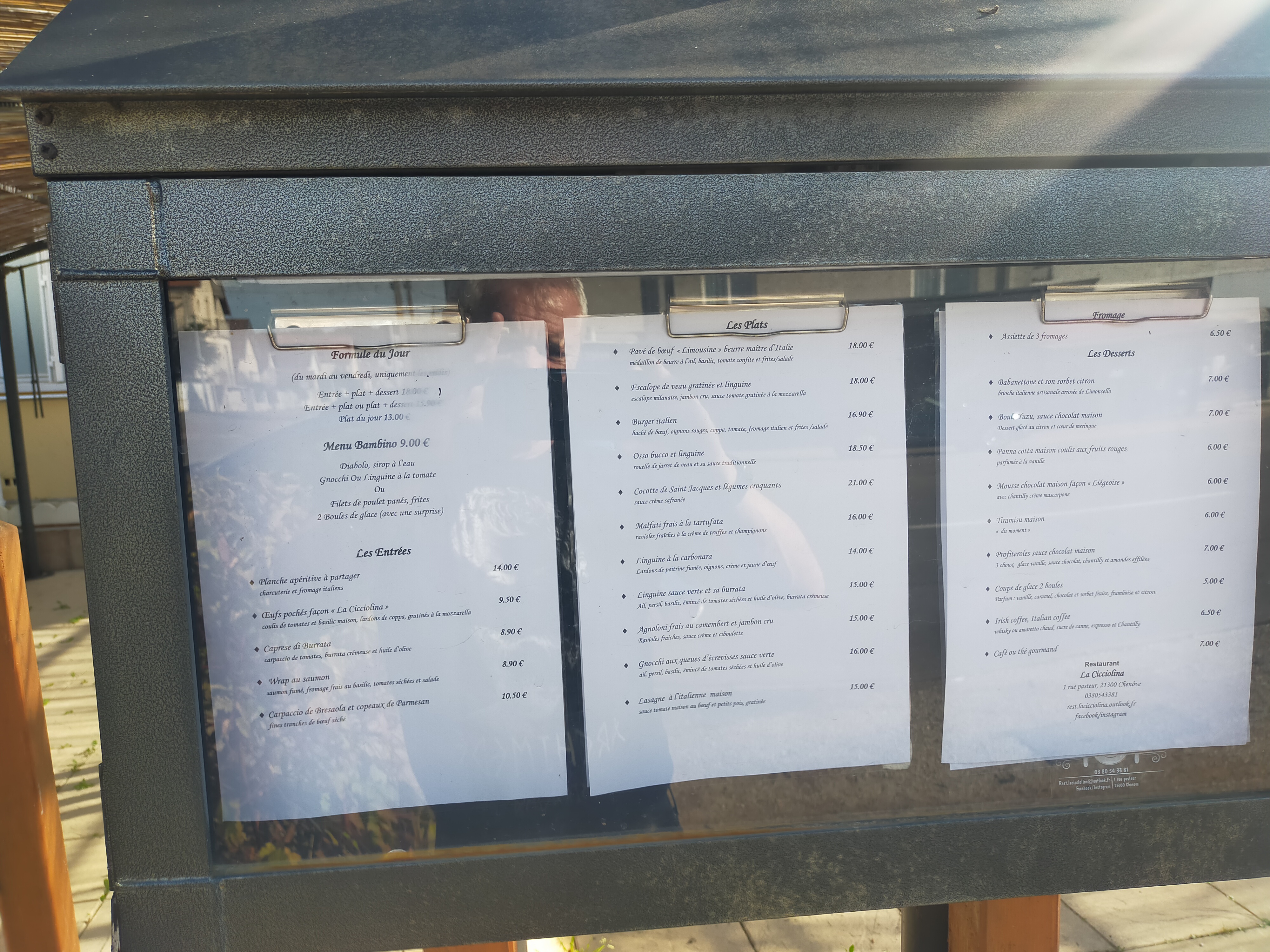 Accueil et service agréables, ambiance italienne. Je recommande l’aile de raie aux câpres (avec un filet de citron à la place du noisette, c’est meilleur pour la santé 😉) accompagné d’un gratiné à l’italienne de courgettes et tomates. Une adresse à visiter sur Dijon, avec une belle terrasse.