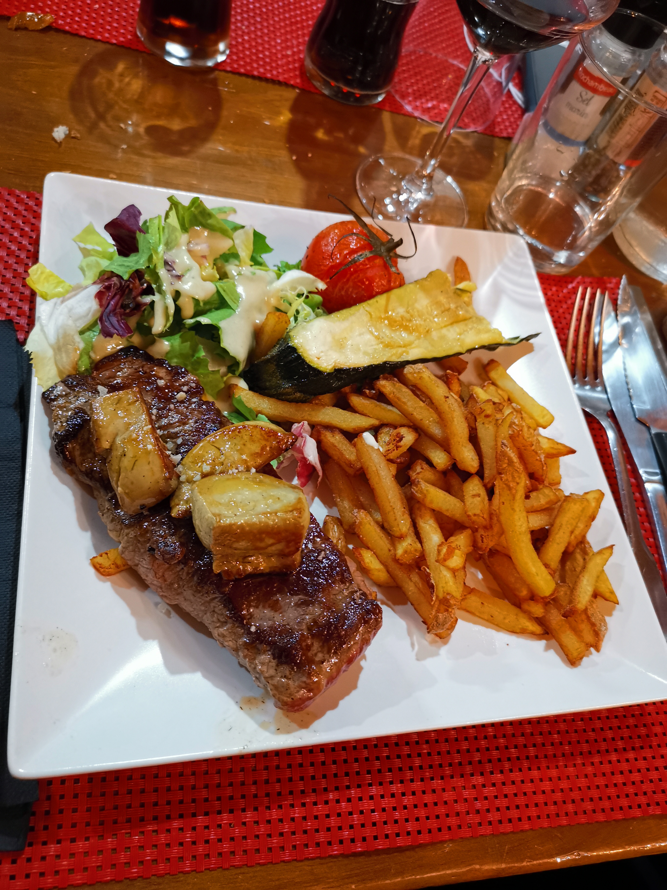 Un bon accueil, Un service excellent, Une viande toujours aussi tendre MAIS car il y a un MAIS. Une lenteur de la cuisine, 1h d'attente entre l'entrée et le plat principal !!!! ET le menu enfant qui arrive en dernier !!! La serveuse était très professionnelle et était vraiment désolée car elle a réclamée plusieurs fois la suite de notre repas. Nous avons été avec mes amis à deux doigts de partir. Plutôt que de vouloir toujours remplir plus, n'acceptez pas plus de clients que vous êtes capable de servir !!!
