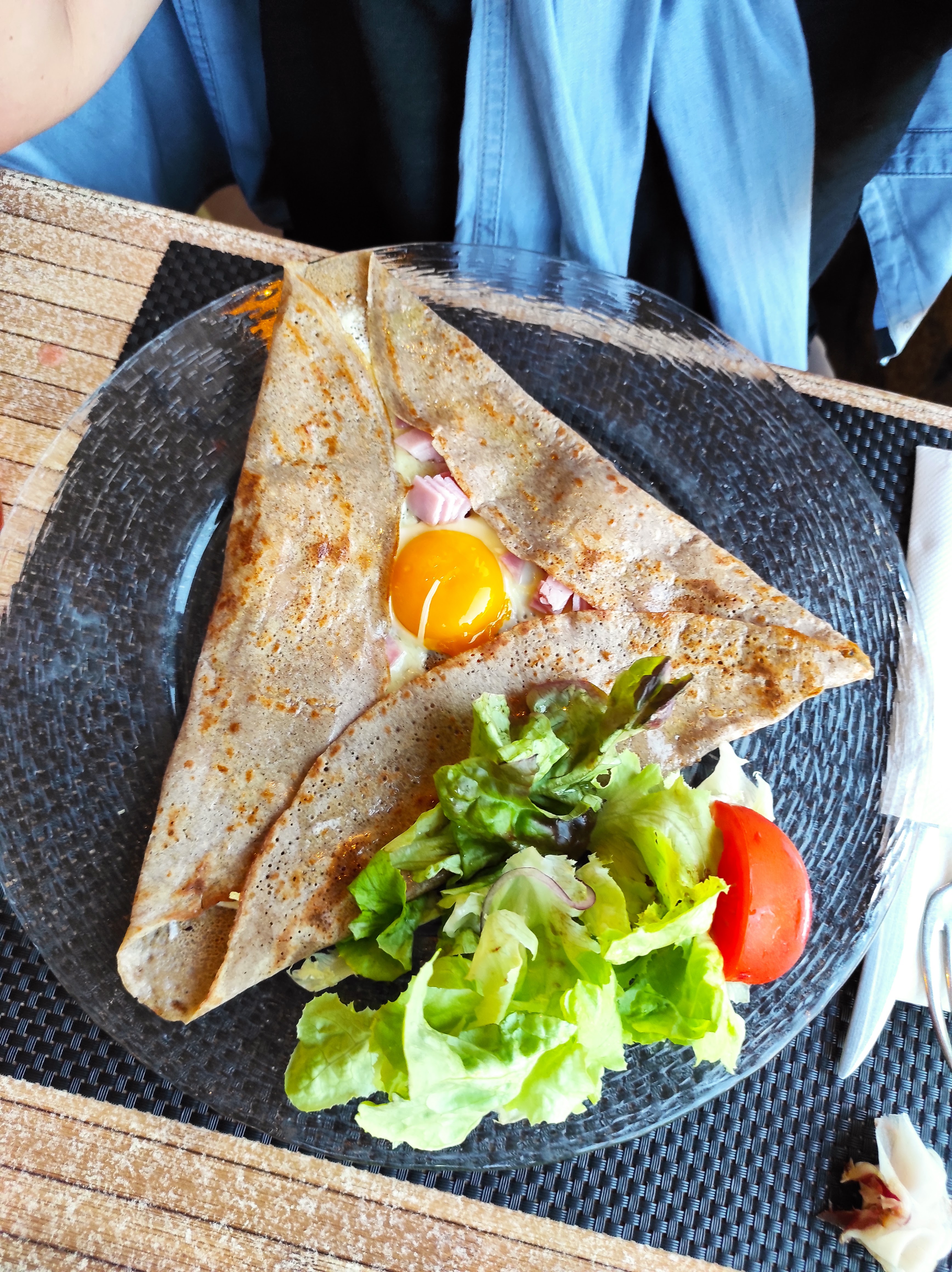 Très bon accueil, service rapide, le cadre est très joli. J'ai mangé une crêpe 3 fromages qui est servi avec une salade. Un vrai delice. Je recommande vivement.