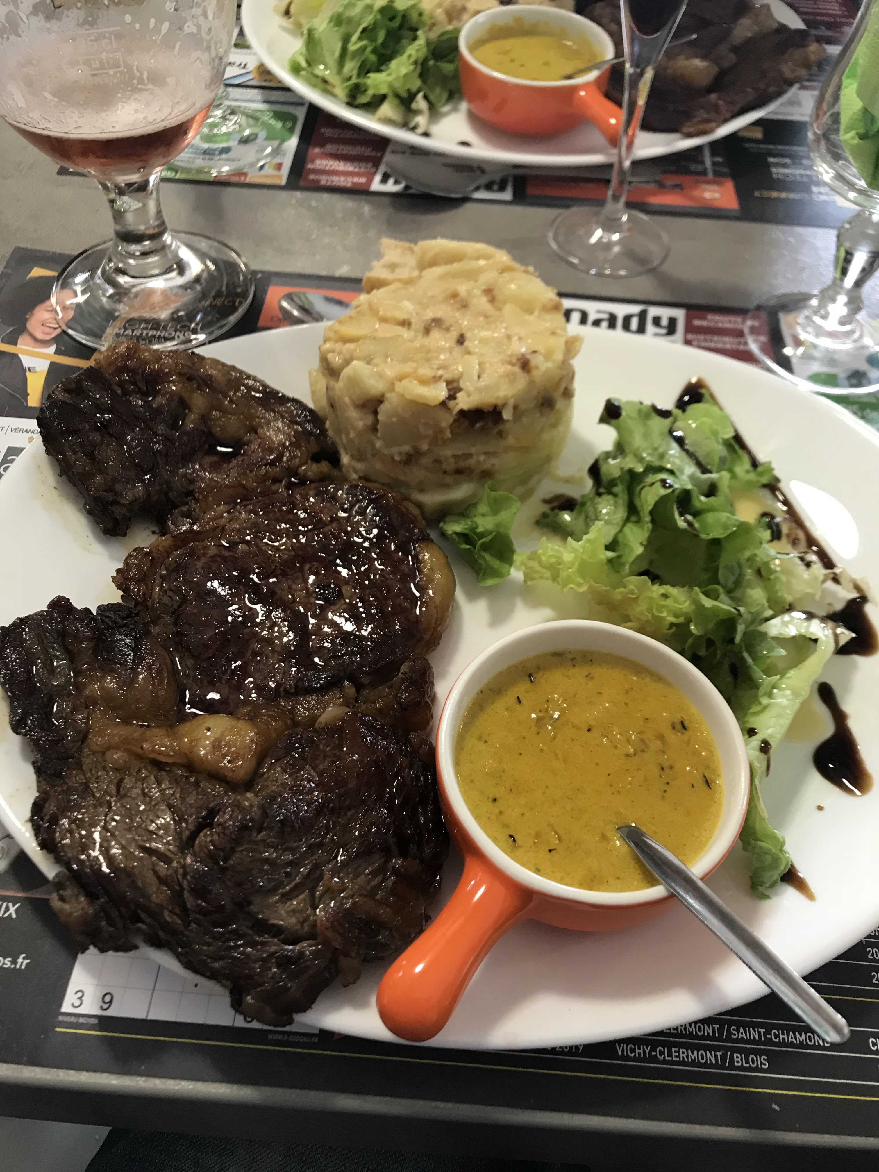 Nous nous sommes arrêtés déjeuner un midi de semaine pour couper un trajet de route. Génial ! On ne pouvait pas espérer mieux. Une super ambiance dès qu'on passe la porte, tout le monde aux petits soins et toujours avec un mot gentil. Une cuisine tout fait maison, c'est remarquable et franchement un régal ! Pour un prix tout doux : de mémoire 16euros pour entrée+ plat+dessert+1/4 de vin. Si on repasse dans le coin on reviendra c'est sûr ! Merci et vraiment bravo pour ce que vous faites. Plus de détails : Le menu change tous les jours et pour nous c'était - en entrée : salade de pommes de terre et assiette de charcuterie - en plat : courgette farcie aux épices marocaines (un régal) avec riz et un beau morceau de poulet enroulé de panure avec une sauce délicieuse - en dessert : une assiette de fromage à tomber par terre... Le saint nectaire (ou presque) le meilleur jamais goûté ! Et un tiramisu poire chocolat au lait (un bonbon de douceur !)