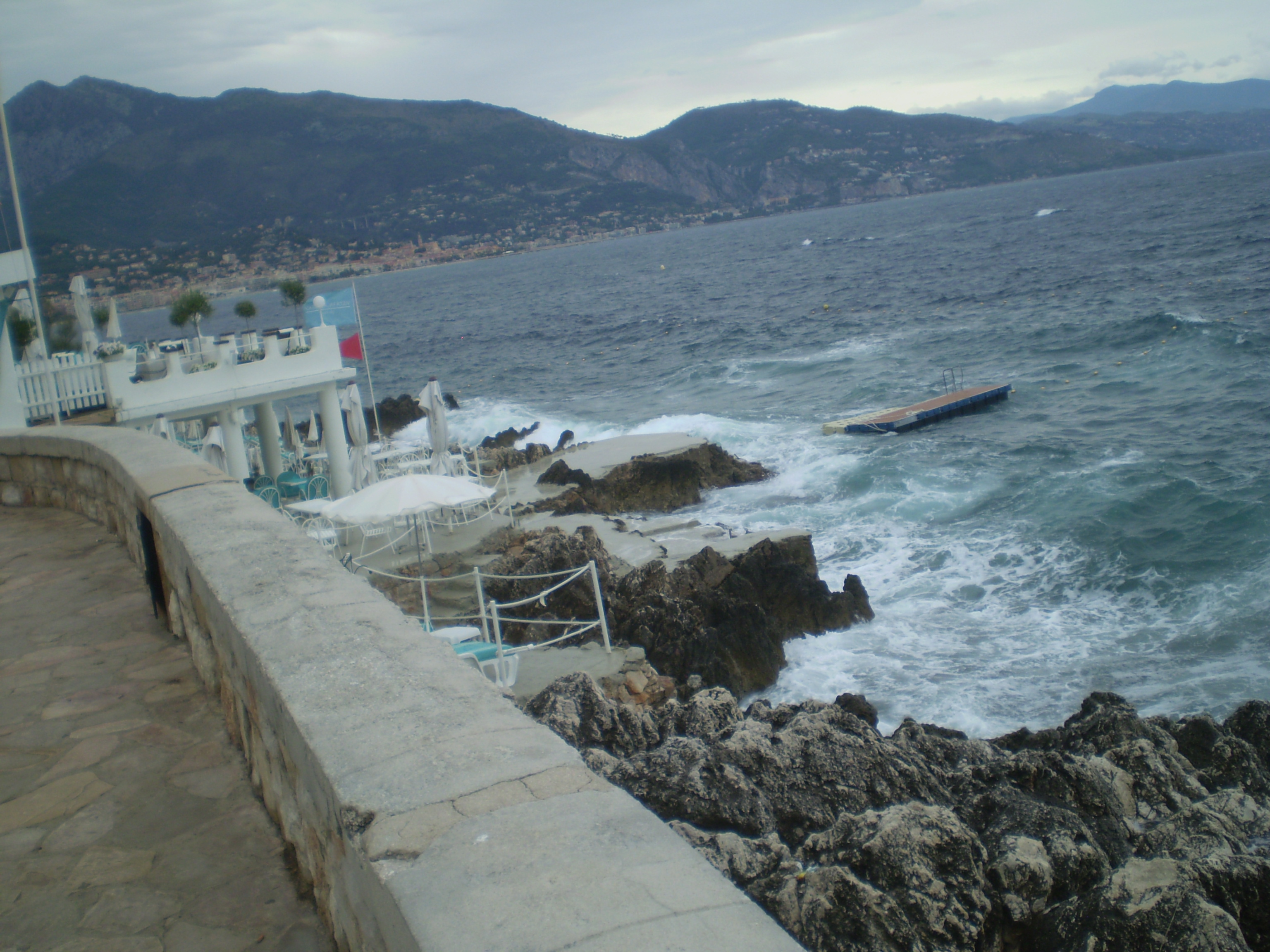 C'est le restaurant/plage de l'hôtel Vista à Roquebrune Cap Martin. La carte n'est pas immense, mais elle propose des plats capables de satisfaire tous les palais, même les plus exigeants ! Personnel courtois, rapide, souriant et très agréable. Le lieu est superbe : les tables sont positionnées à quelques mètres de la falaise, directement sur la mer. Cela vaut vraiment la peine d'essayer en arrivant avant le coucher du soleil pour profiter d'une vue imprenable. Je suggère d'apporter des anti-moustiques et anti-insectes : l'endroit est naturellement exposé, notamment en présence d'humidité. Absolument recommandé !