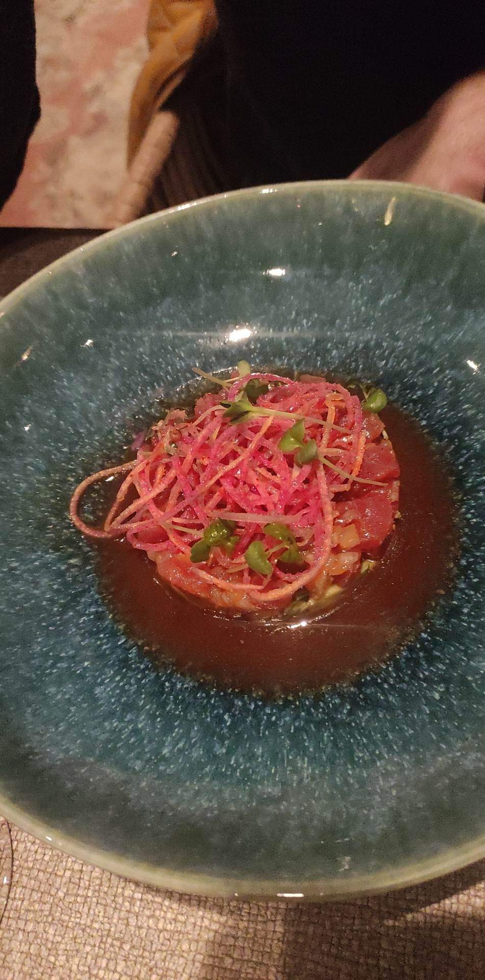 Ce soir nous avons vécu une très belle expérience. Tout est conforme à nos attentes tant dans l’assiette que dans le service. Le tataki de bœuf était parfait , le filet de bar également ainsi que le risoni de st Jacques . Encore merci
