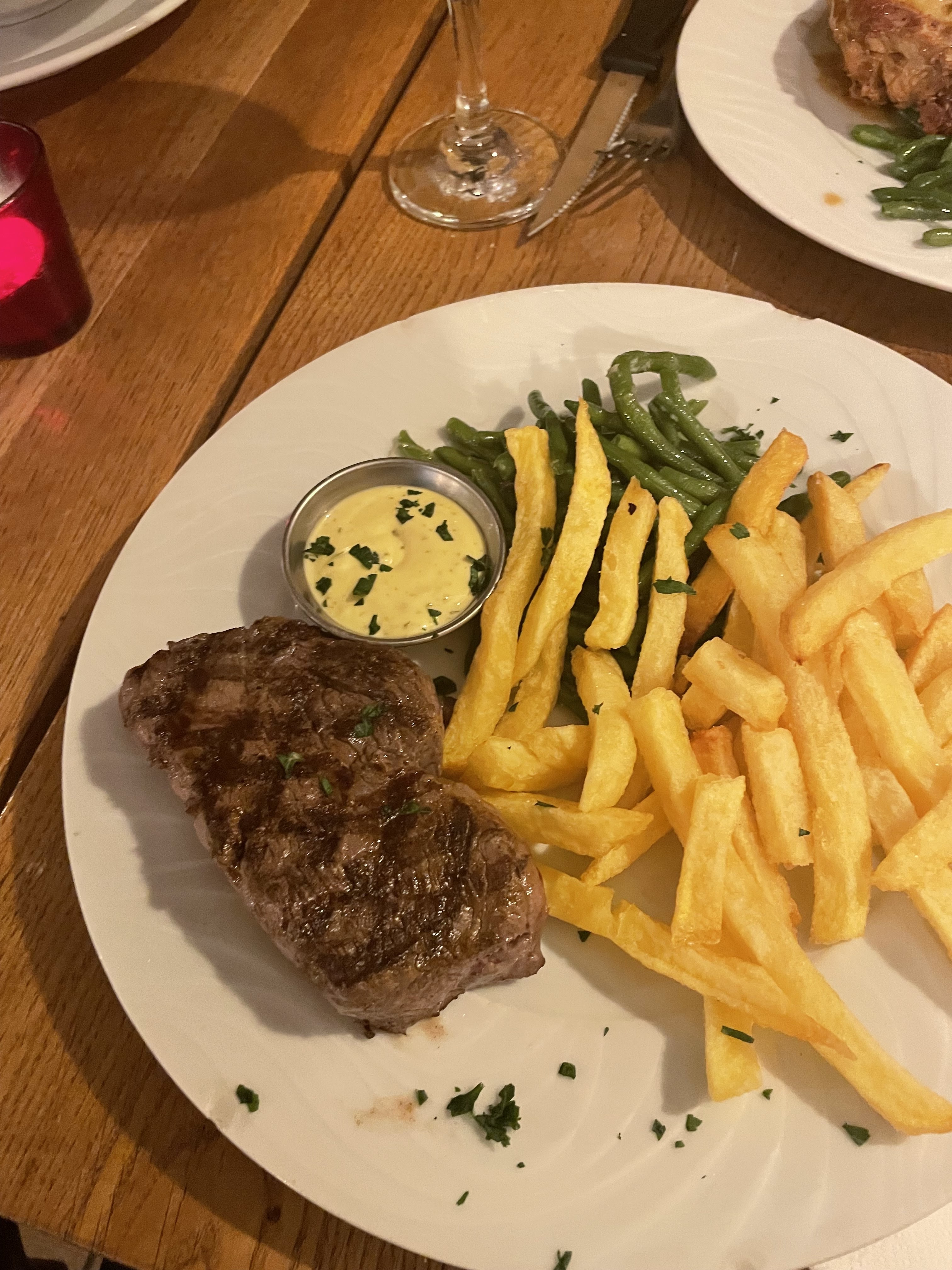 Nous avions initialement prévu de dîner au Cezembre mais c'était complet et nous avons trouvé ce restaurant. Nous avons eu du foie gras en entrée, des côtes de porc au miel et au vin, un steak Chateaubriand et de la raclette en plat principal, desserts compris. Dans l'ensemble, la nourriture était très délicieuse et le prix n'était que de 61 euros pour 2 personnes ! Ça vaut vraiment le coup !