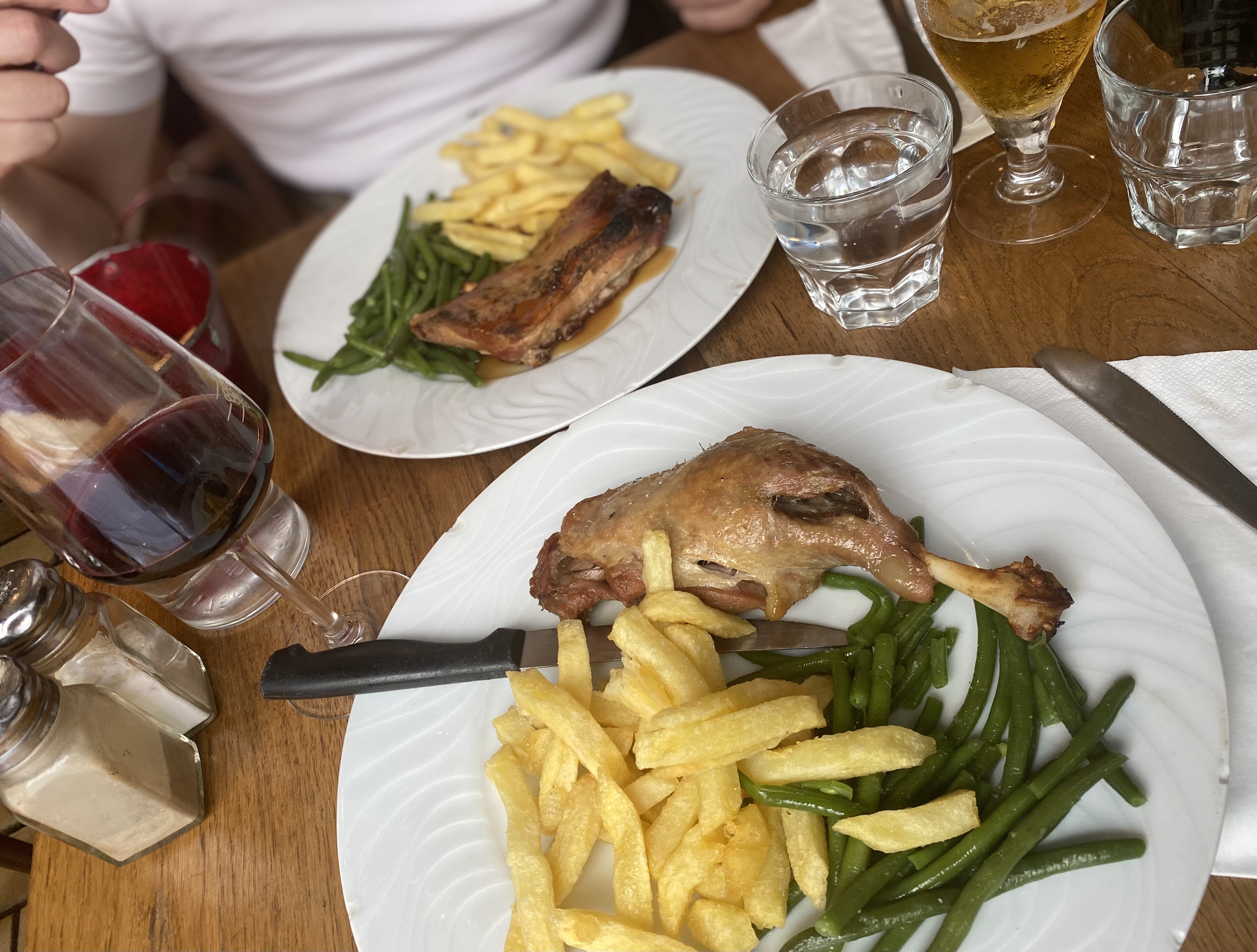 Un bistro sympa et convivial rempli de jeunes locaux. Les serveurs sont sympathiques et remplissent régulièrement du pain et de l'eau. La soupe à l'oignon est correcte, avec beaucoup de fromage par-dessus. Les escargots sont un peu petits, nous avons aussi essayé des moules farcies. En plat principal, nous avons eu un risotto végétarien, du canard confit et une cuisse de poulet frite. Dans l'ensemble, bon rapport qualité/prix.