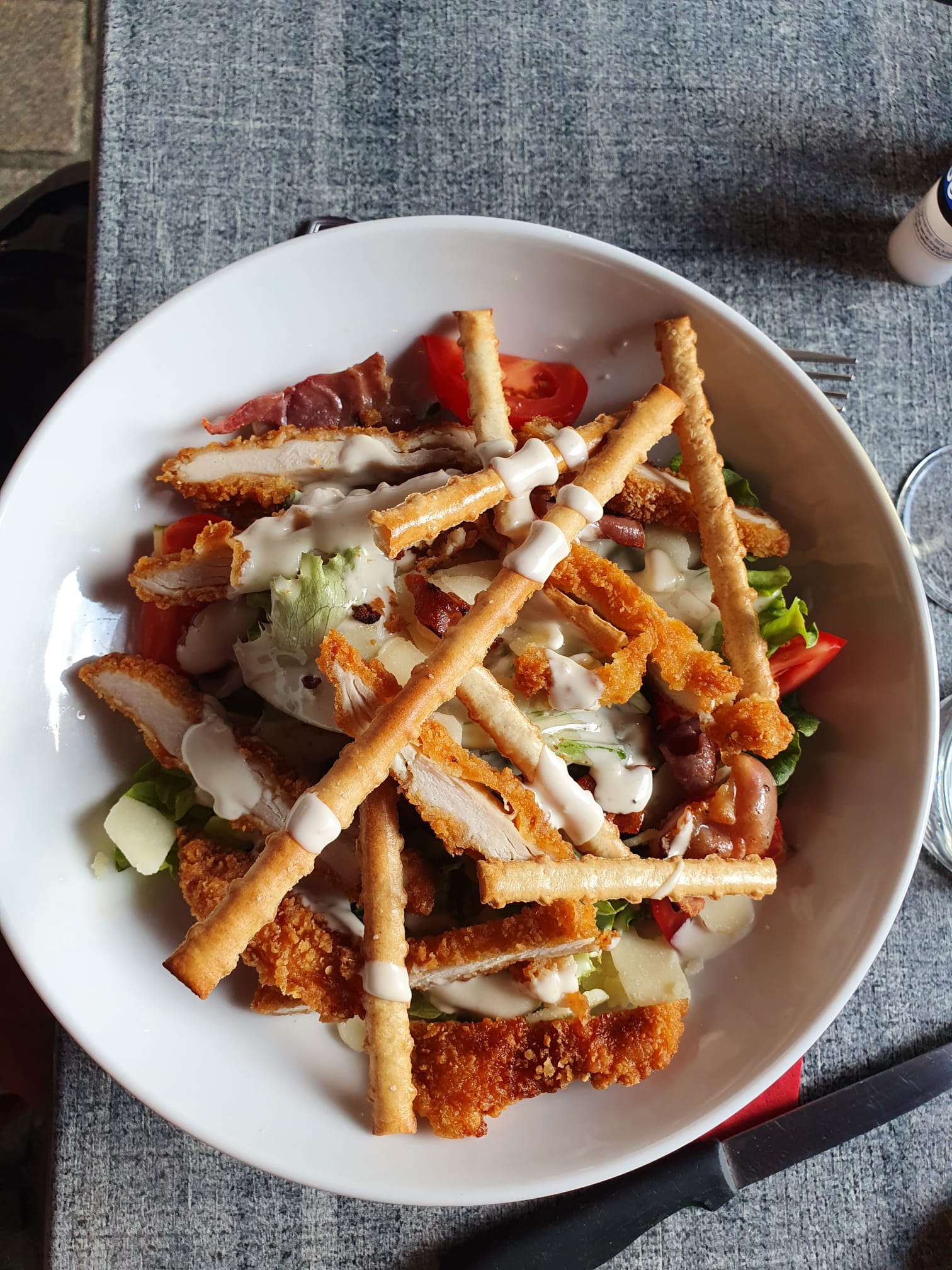 Service souriant, salades repas impeccables. (J'aimerais mieux sur assiette que dans des grands bols, mais généreuses et savoureuses).