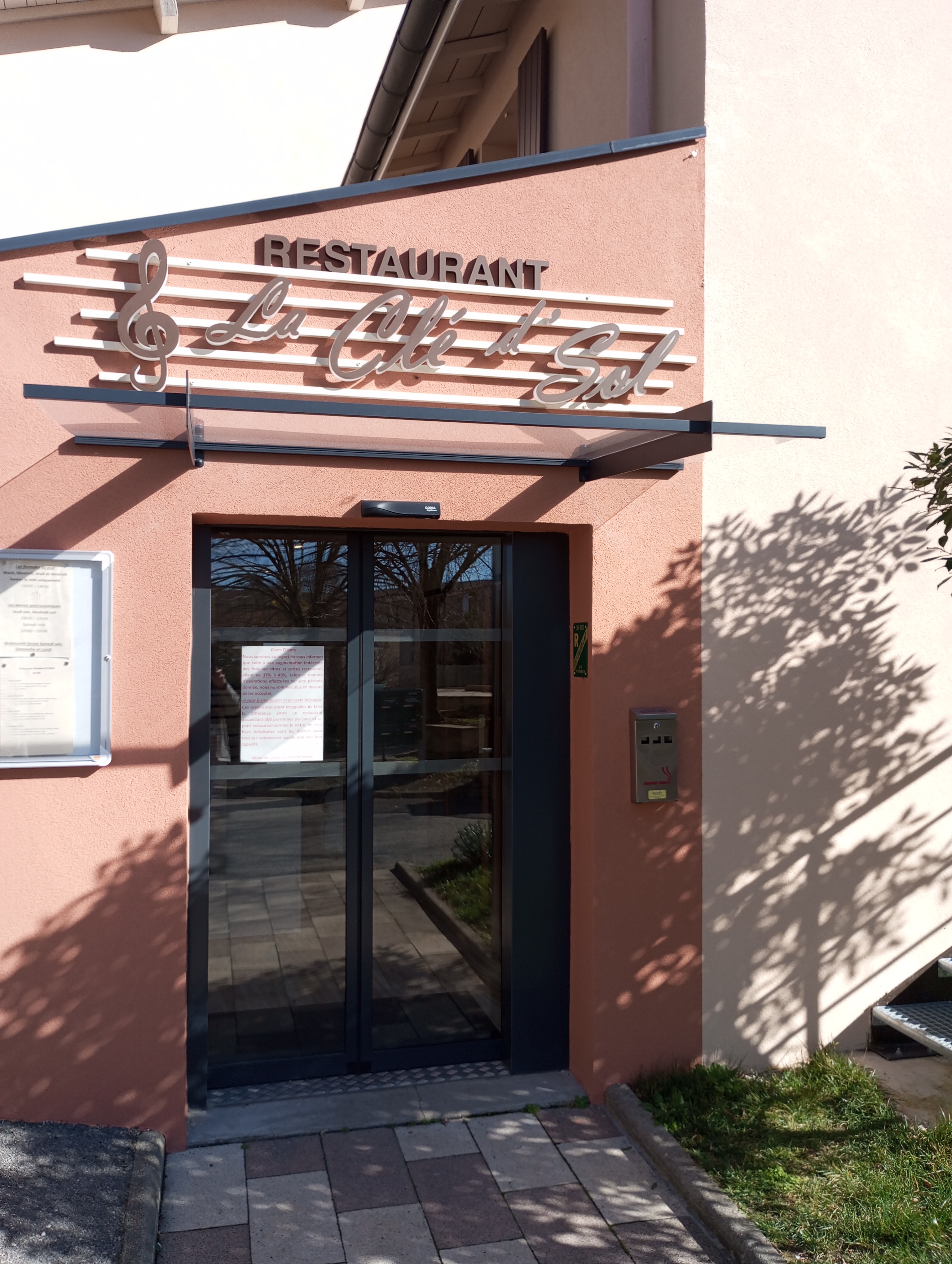 Alors, le Restaurant La Clé d'SOL est fermé (salle) en ce temps de covid. Malgré tout, il est possible de prendre une commande à emportée. Cela fait deux fois que je mange ce qui est proposé. Je trouve ainsi que mes proches que le rapport qualité /prix est au top. C est même goûteux et raffiné... Pour la Saint Valentin 2021, j ai pu parler avec le personnel /ou proprio, j ai bien aimé l échange verbale. Je conseille ce lieu à plus de 90 %. Bien à vous, dim