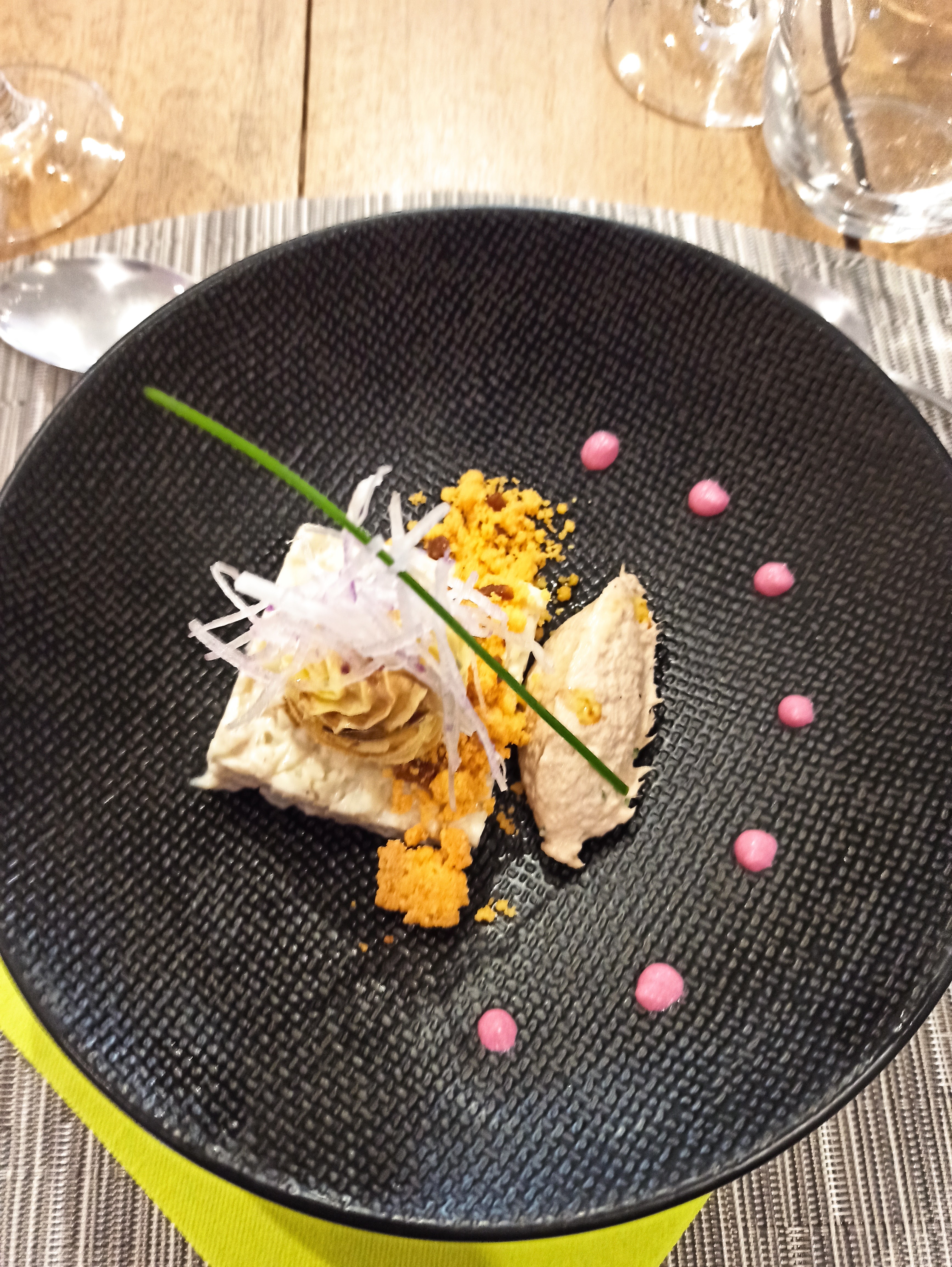 De très bons mets originaux dans la présentation et savoureux de l’entrée au dessert nous nous sommes régalés Dommage que la proximité de messieurs au verbe haut ait perturbé notre dégustation !!!