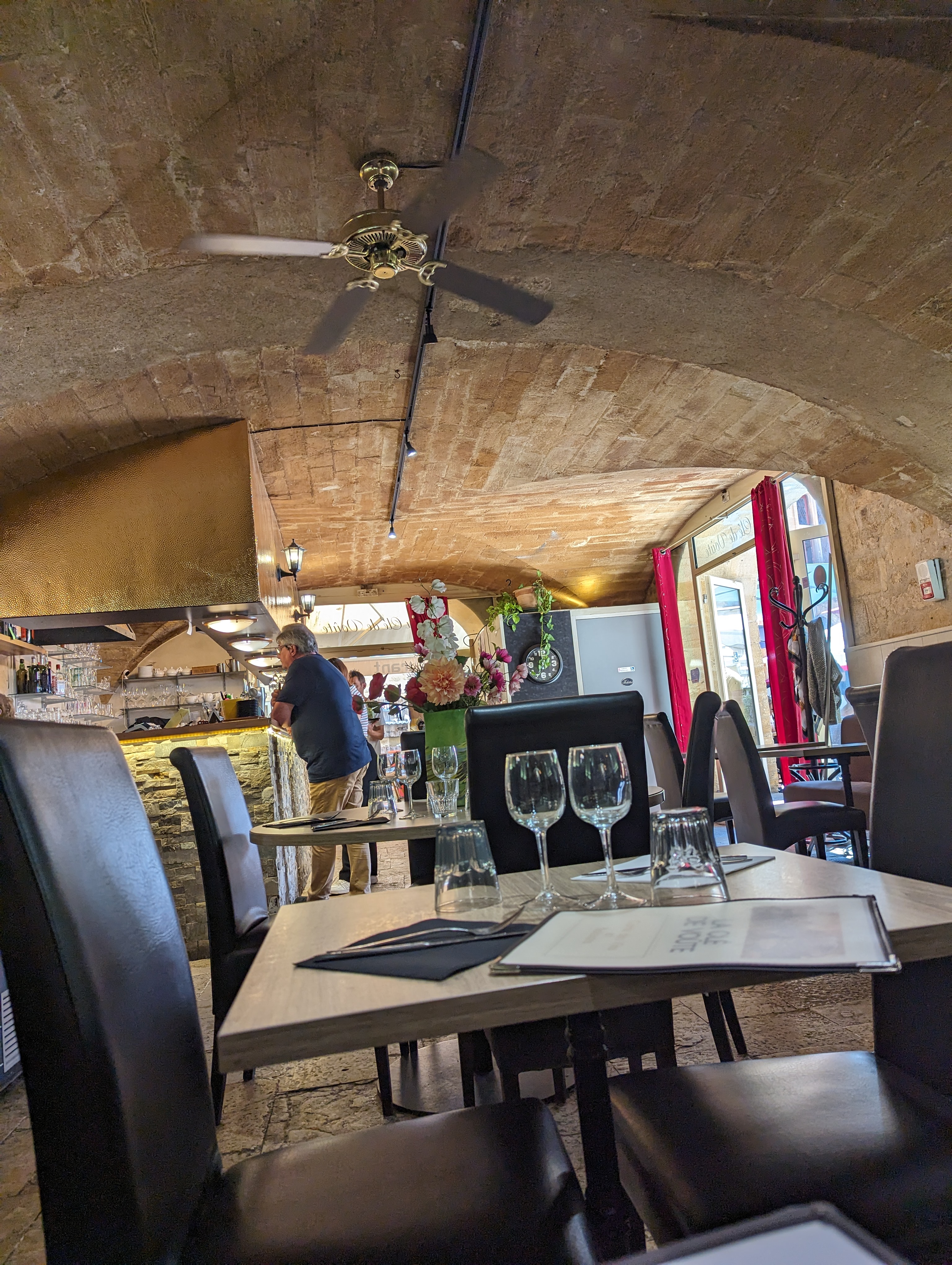 Un cadre sympathique original avec les voûtes.. petit bémol ce restaurant mériterais un bon coup de déco moins de bazar un peu partout.. un petit bémol pour le dessert n appellez pas un soufflé alors que c'est un parfait glacé....