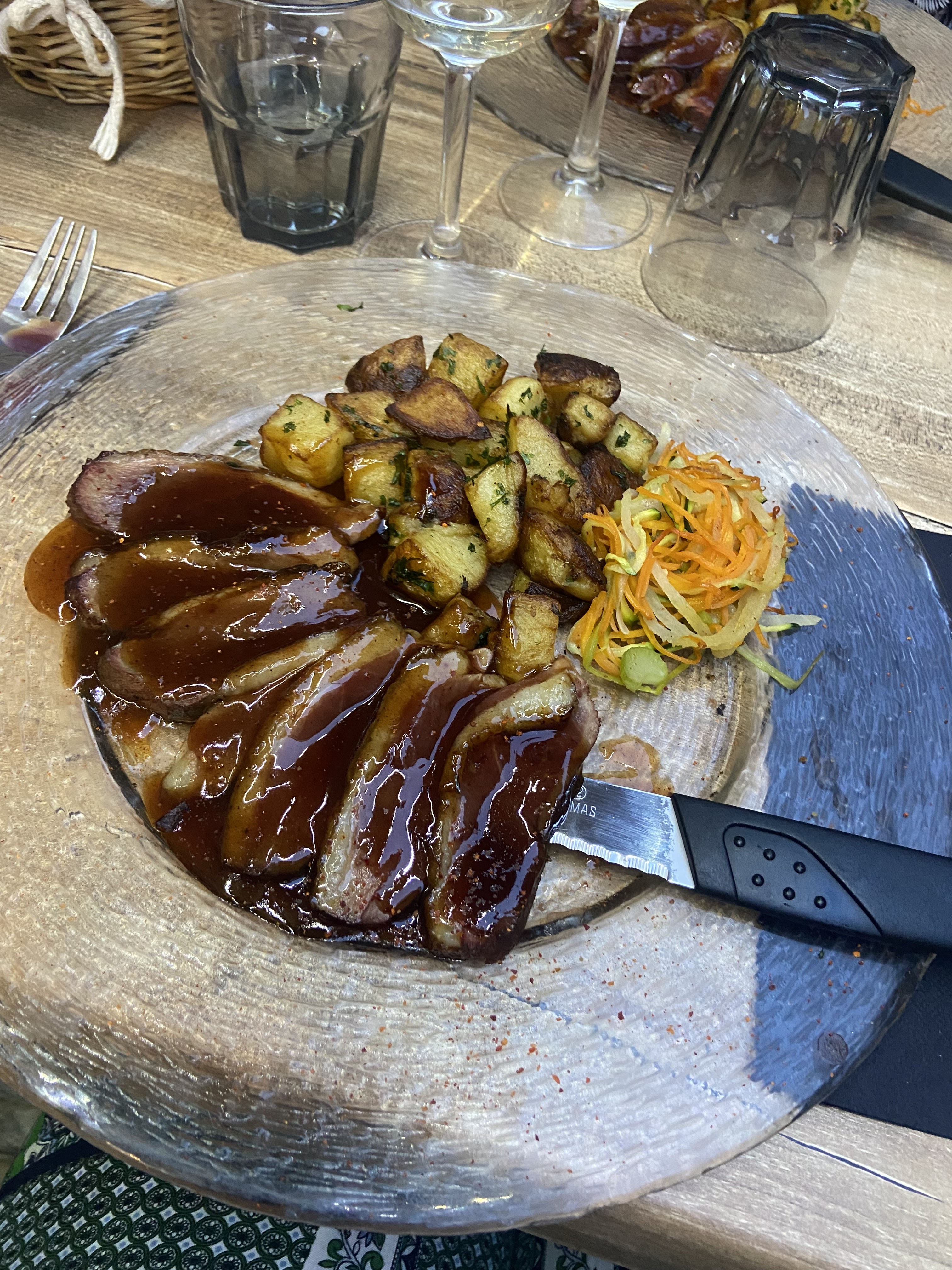 Les plats sont délicieux et faits maison, nous y sommes même retournés le soir tellement cela nous avait plu! Le midi nous avions choisi le magret de canard... excellent! Le mélange sucré salé était très original et le tout pas trop lourd. Le soir nous avons opté pour le camembert rôti, très bon. Une très bonne adresse sur Sarlat.