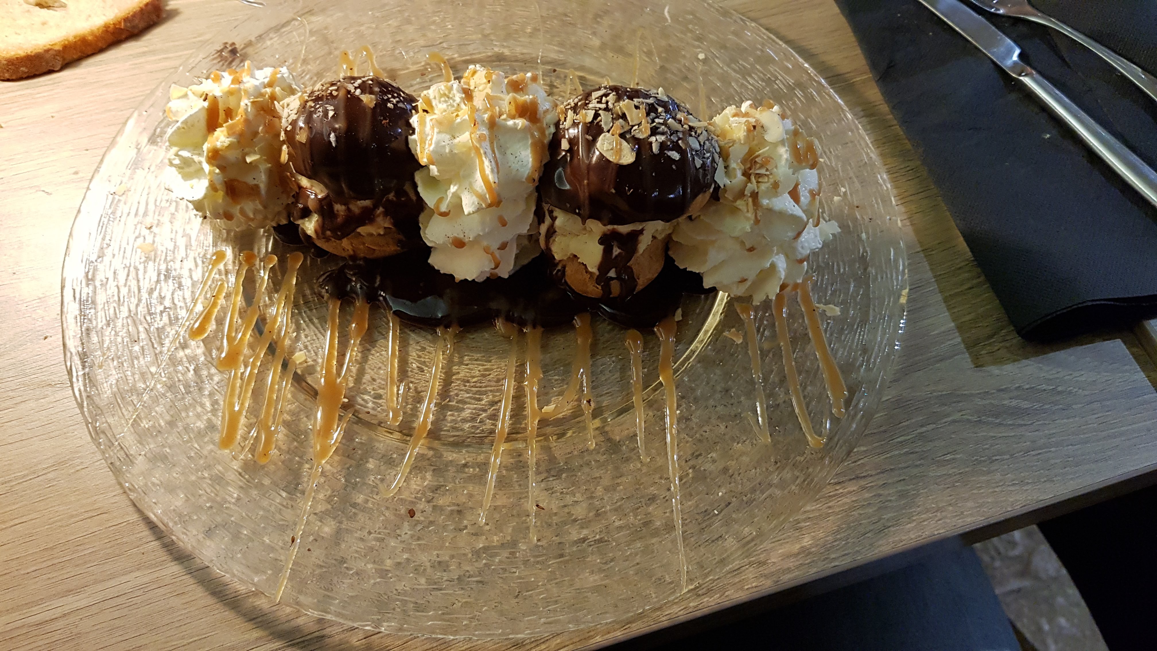 Dans l'ensemble c'est plutôt très bon, et sans aucun doute fait maison et ce pour un prix plus que raisonnable. Assez satisfait de l'expérience, je ne donne toutefois pas la cinquième étoile pour les raisons suivantes, - le pain n'est pas d'une très grande qualité ce qui est dommage au vu de l'exelent foie gras (mi-cuit)qui est servi. -la pâte à choux des profiteroles est moyenne , ce qui est dommage avec une glace artisanale aussi bonne. Malgré ces deux petits bémols je revommande, il s'agit d'une bonne adresse.