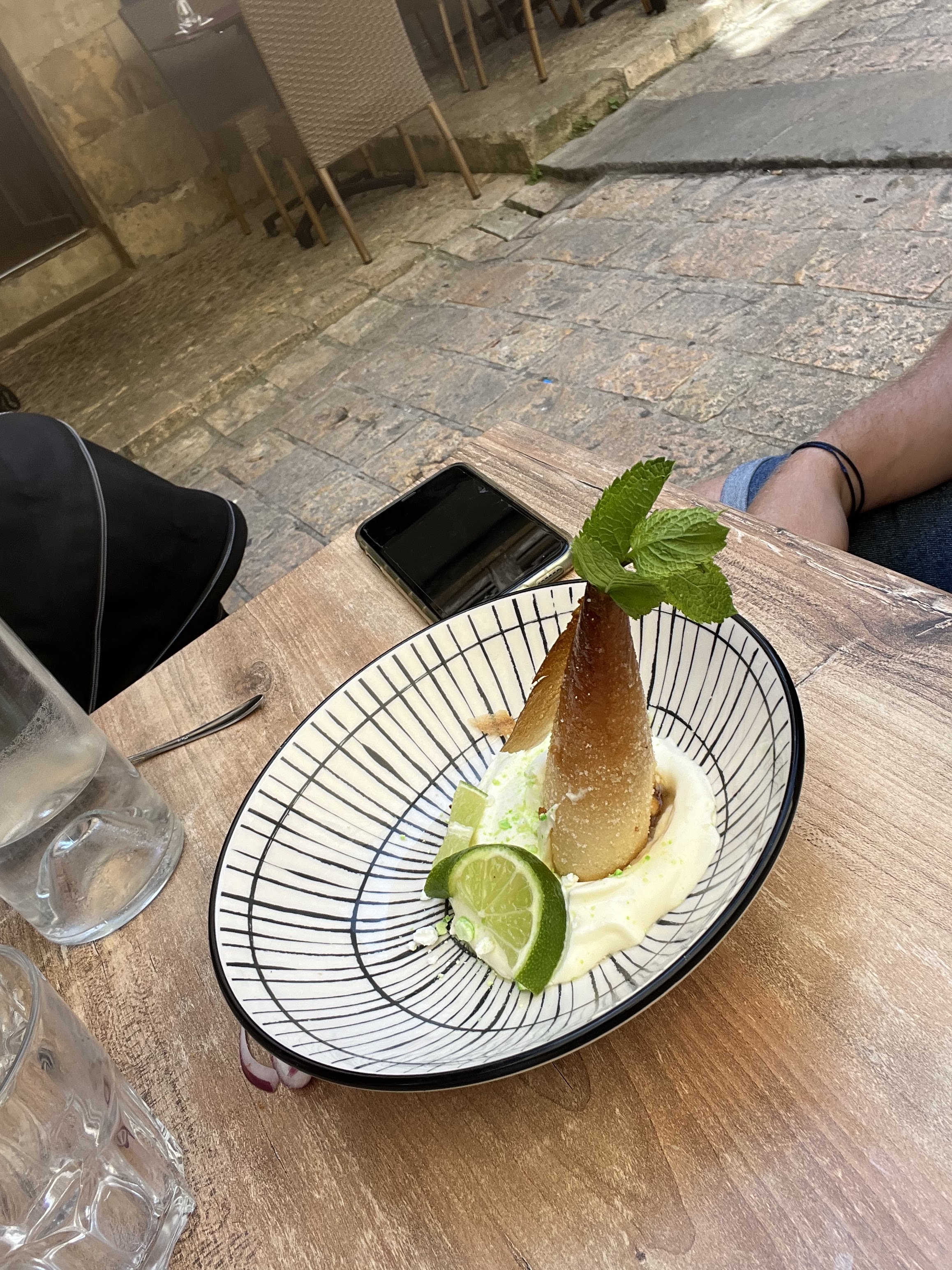 Nous y avons mangé 2 soirs de suite tellement on s'est régalé ! Et pour seulement 22€ entrée +plat, fait maison 👍 Les serveurs sont très sympas et réactifs. Peu d'attente. Nous recommandons vivement ce restaurant qui, contrairement à d'autres, n'est pas un piège à touristes.