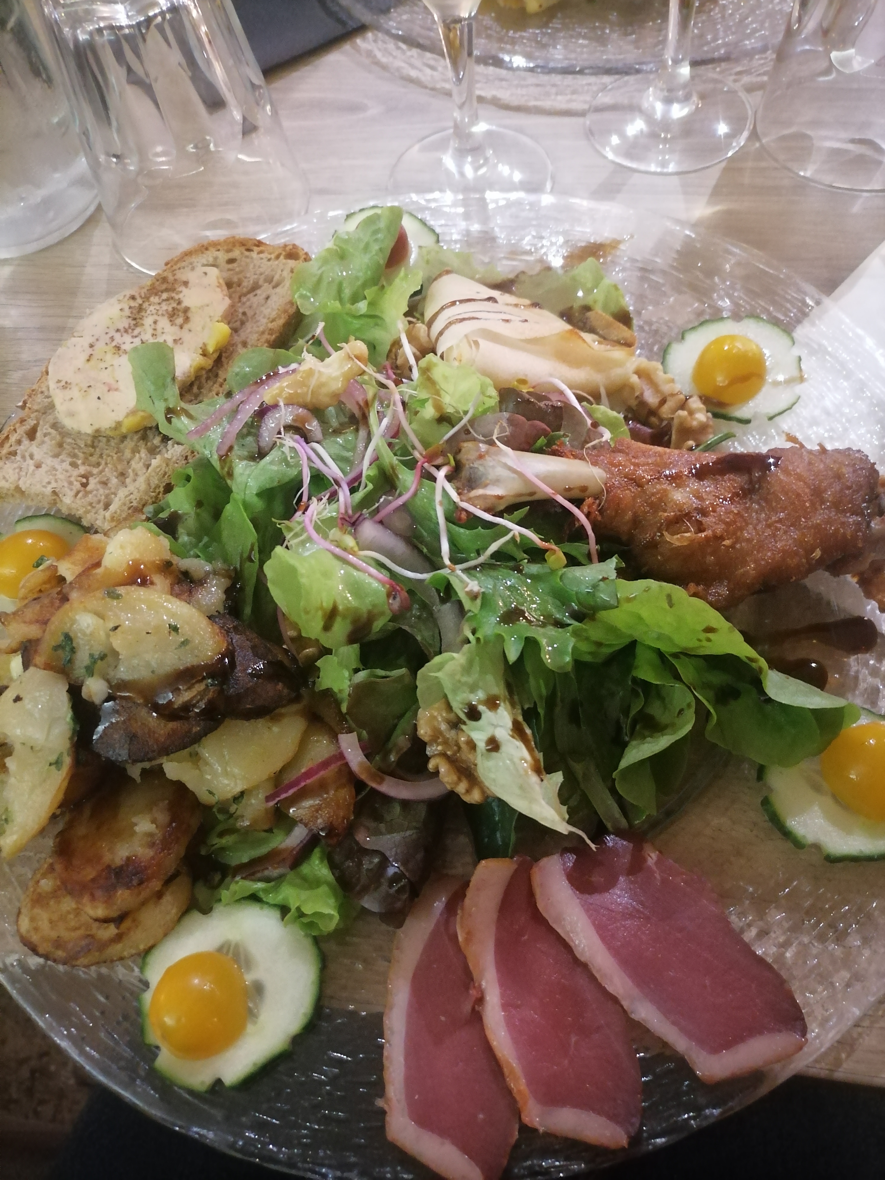 Excellent, enfin un restaurant qui n’est pas un attrape-touriste. Foie gras, aiguillette de canard et dessert au noix. Un menu typique de la région! Et je n’ai pas été déçue ! Samedi de Pâques, restaurant blindé et pourtant un service rapide avec un personnel souriant. Bravo à vous nous nous sommes régalés.