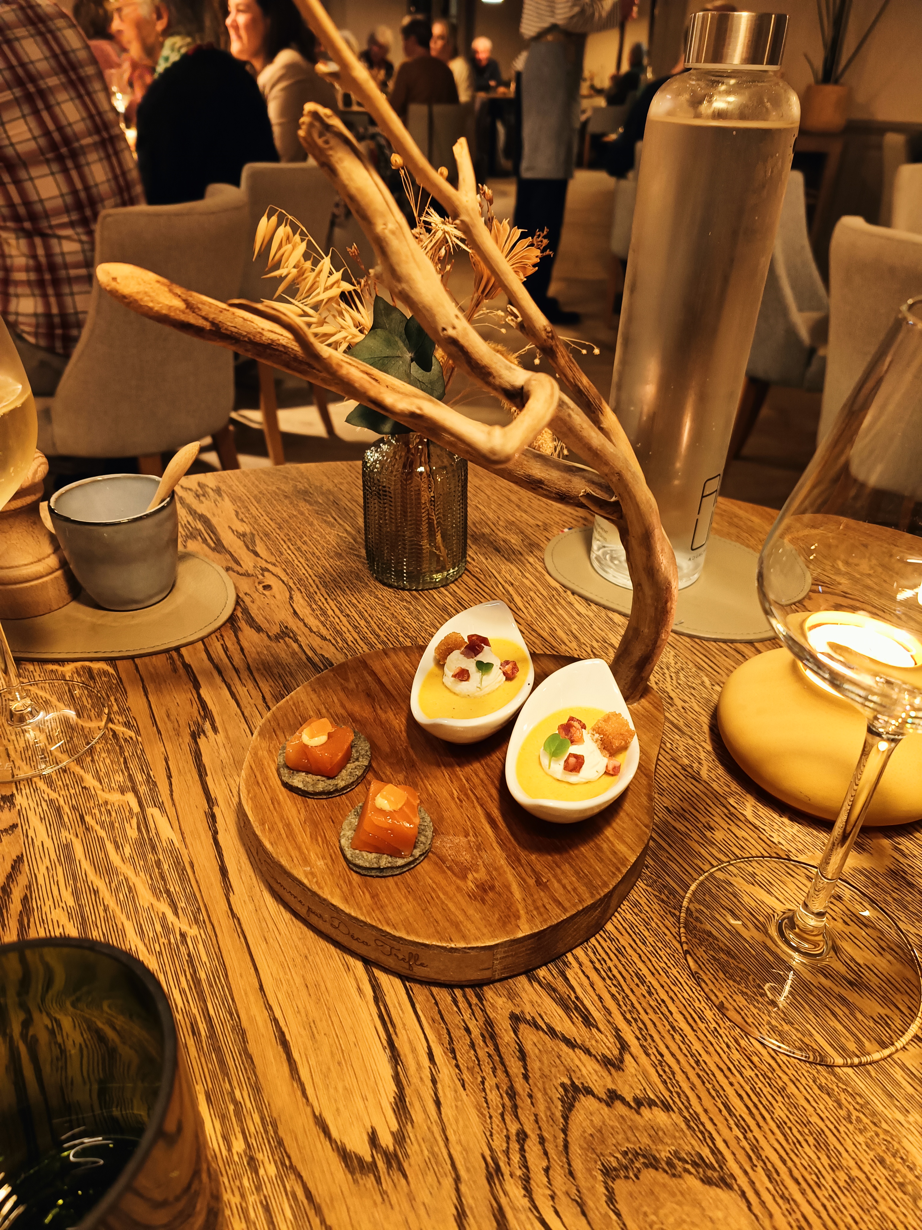 Découverte au hasard.... Agréablement surpris, un mélange des saveurs qui ne laisse pas sans voix . Du personnel élégant et au petit soin. Des produits locaux savamment mis en valeur ... voilà la cuisine que j'aime. Presque un regret de ne pas avoir pris de fromage 😉 (oui ce soir du 20/01)... mais ne pas avoir les yeux plus grand que le ventre est une bonne chose . Et oui les bonnes choses ont un prix ... et cela ne me dérange absolument pas dans ce genre de restauran Bref à découvrir