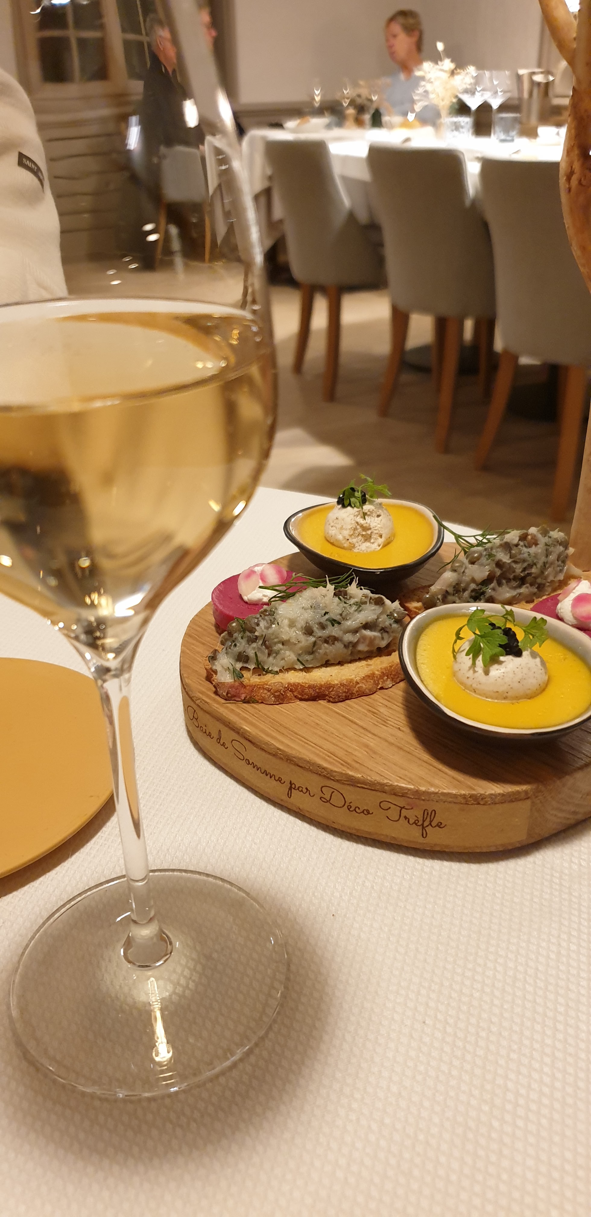 Superbe soirée, apéritif maison délicieux, menu 5 plats varié, soigné et original. Très joli cadre et service très avenant.