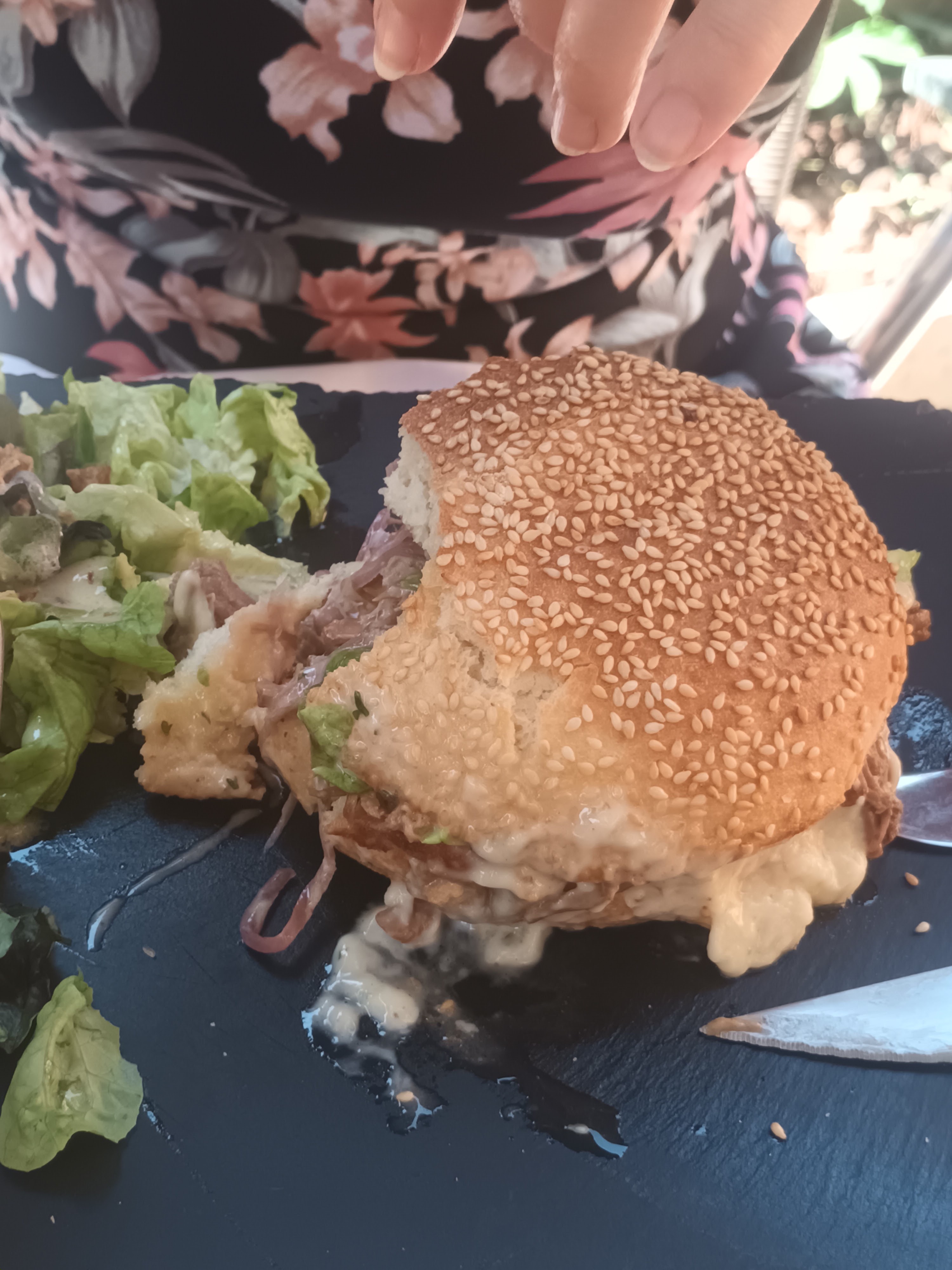 C'est la deuxième fois que je mange dans ce restaurant, la cuisine est vraiment au top, le service aussi et pour l'ambiance il y a une musique de fond c'est cool, il y a aussi une terrasse 😁 Le burger façon grecque est vraiment délicieux et consistant, avec un petit seau de frites maison et une salade 🥗🤩