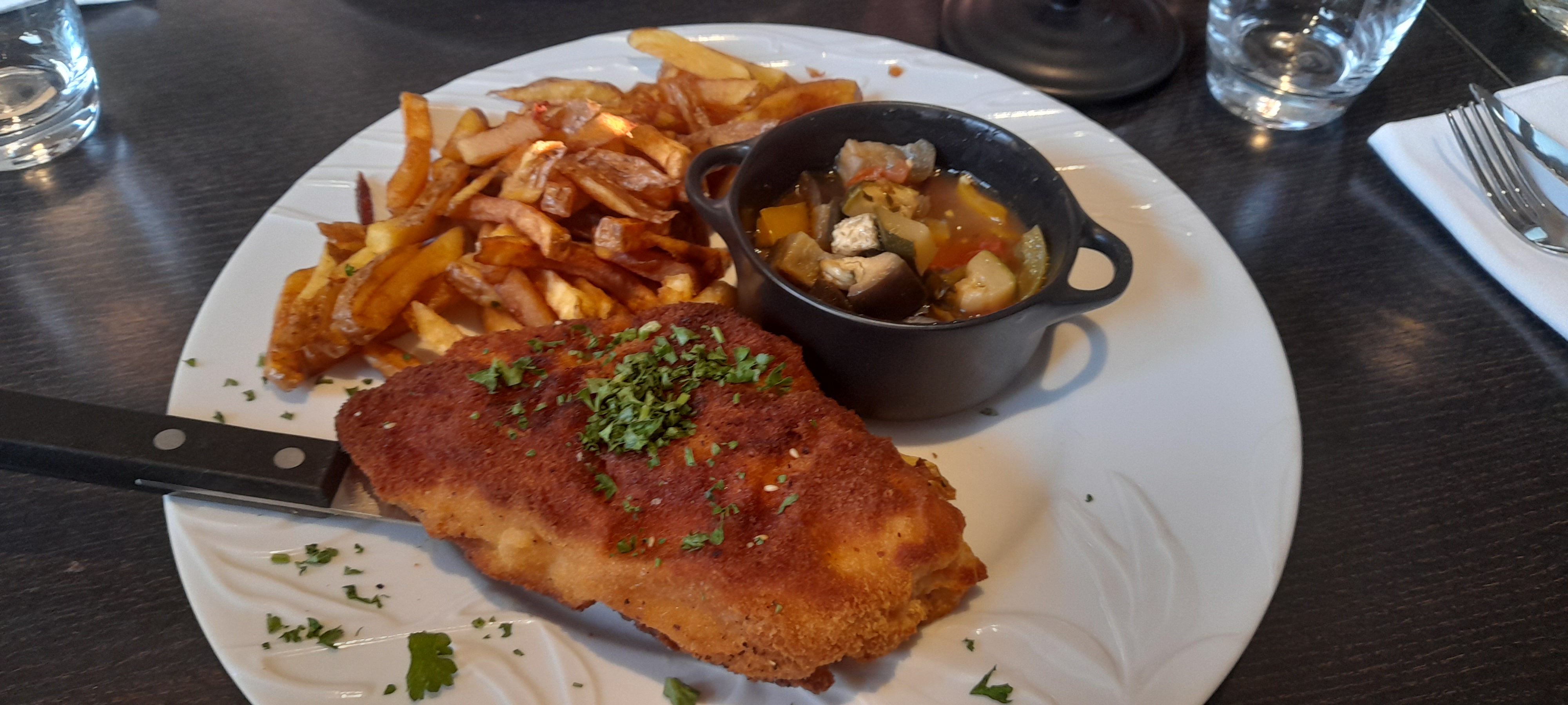 Cordon bleu comme si ma grand-mère l'aurait fait excellent même les frites maison un delice. Rare de trouver des frites maison les restaurants devraient prendre de la graine