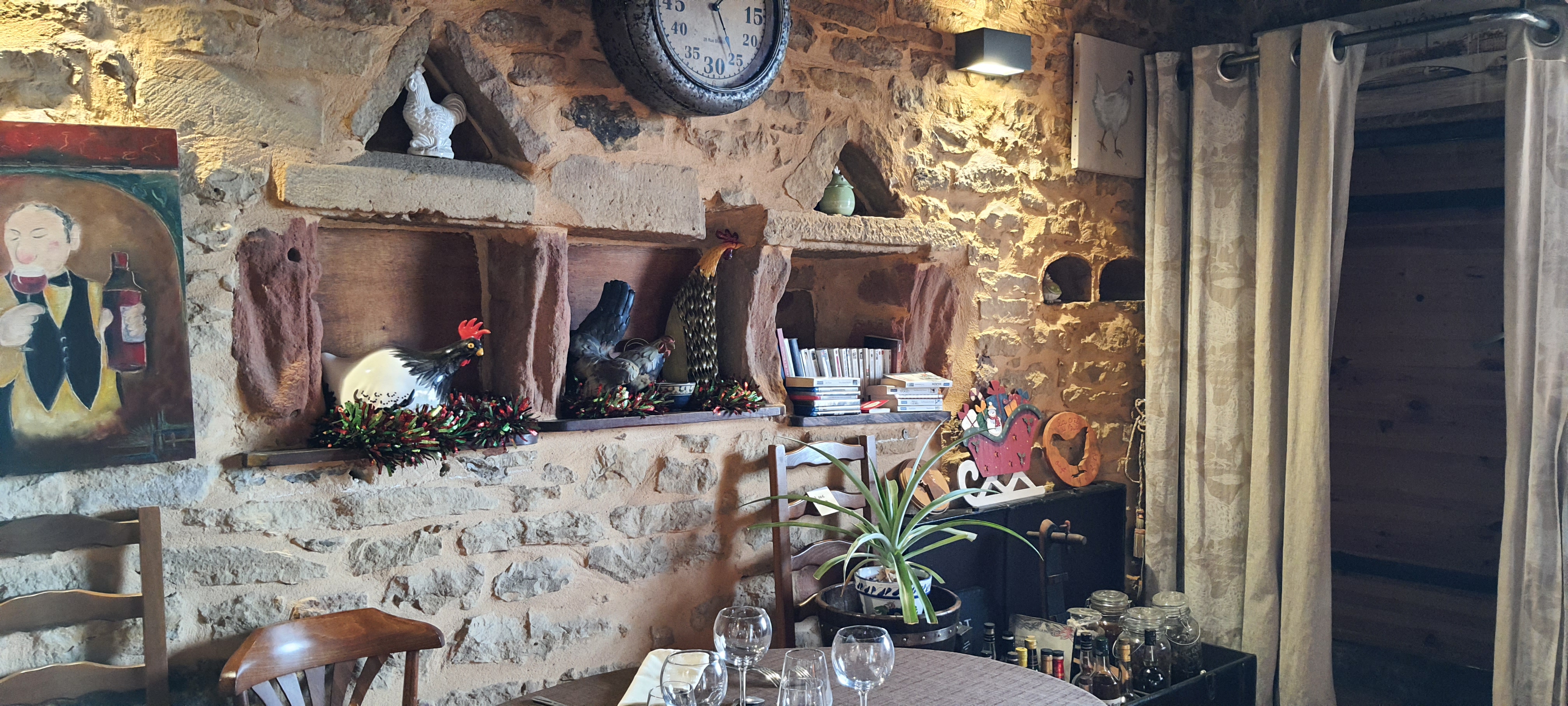 Une belle découverte dans un joli village de pierres dorées. Accueil sympathique, un cadre qui sort de l'ordinaire, avec beaucoup de charme. Le menu du déjeuner en semaine est tout à fait correct, rapport qualité/prix. Les mets sont excellents, bien présentés, et faits maison. La salle n est pas très grande, ce qui confère à l ambiance cocooning du lieu. Une adresse à retenir et à faire connaître. Nous reviendrons avec plaisir.