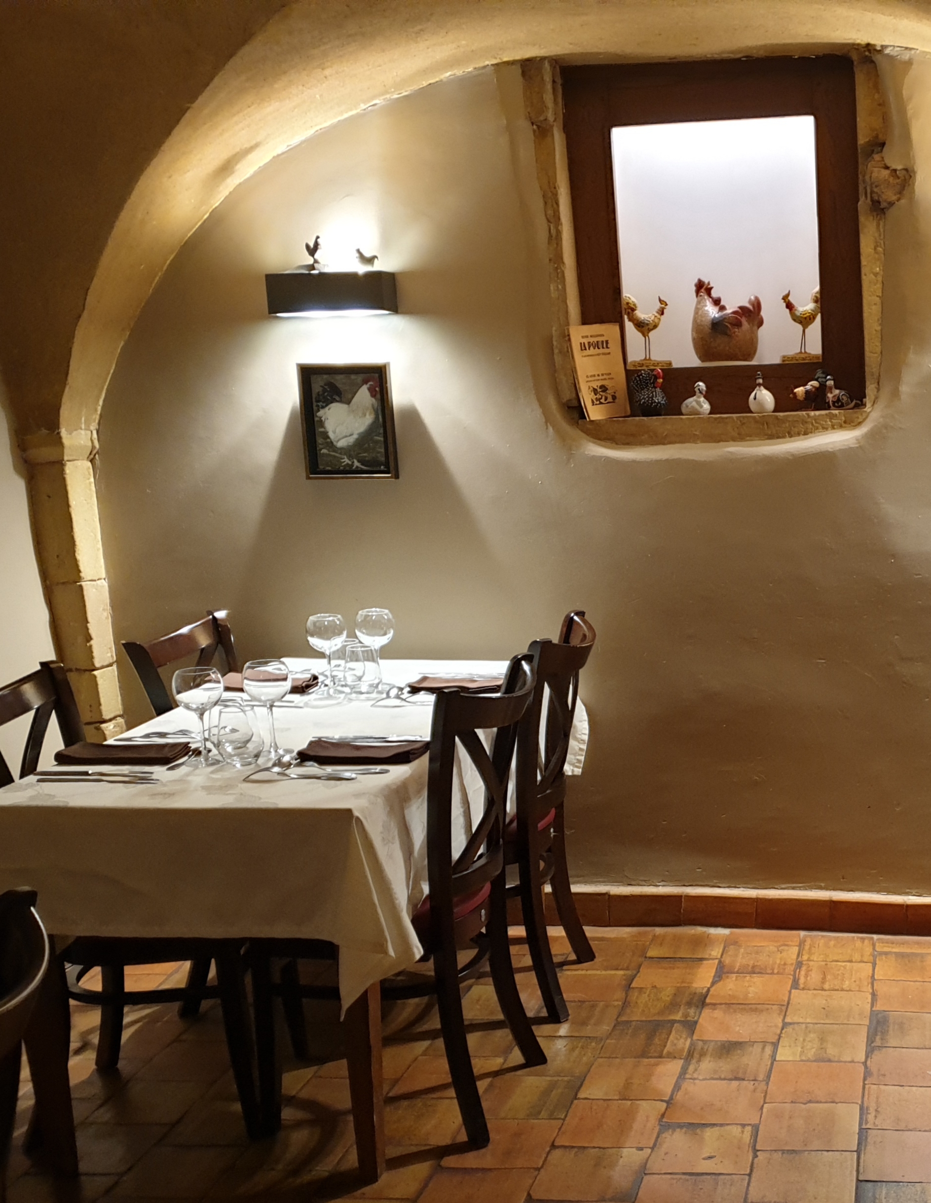 Une très belle découverte! La salle est vraiment magnifique pour qui aime ce style. La décoration sur le thème des poules est chouette (sans jeu de mots...;)). L'accueil et le service étaient parfaits. La carte, petite, est donc synonyme de produits frais, et ça se sent quand on voit les assiettes, puis que l'on commence à manger. Carte petite, mais dilemme au moment de choisir parmi les quatre desserts proposés!!! Le vin suggéré par notre hôtesse était en parfait accord avec les plats. Un vin rouge local vraiment excellent. Il faut aimer et apprécier la vraie bonne cuisine pour aller ici, donc je ne recommande pas de venir avec de jeunes enfants, ou avec des enfants difficiles en matière de repas. Il faut savoir savourer chaque bouchée. Bref, pour résumer, ce restaurant est plus qu'excellent. Il ne faut pas hésiter un seul instant.