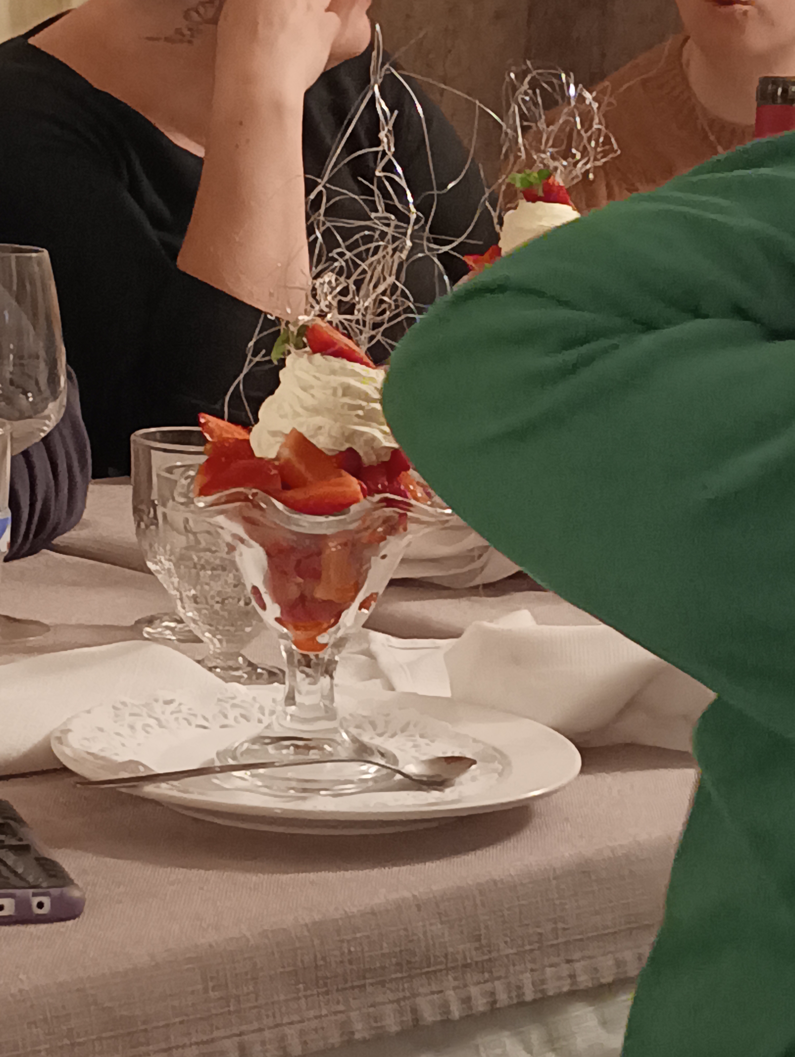 Assiette chaude arrivé trop tôt, viande trop arroser au cognac les sauces arrivé tardivement ainsi sue le pain et il il a juste le dessert qui était très bien ( meringue glacé) que j'ai trouvé très bien.