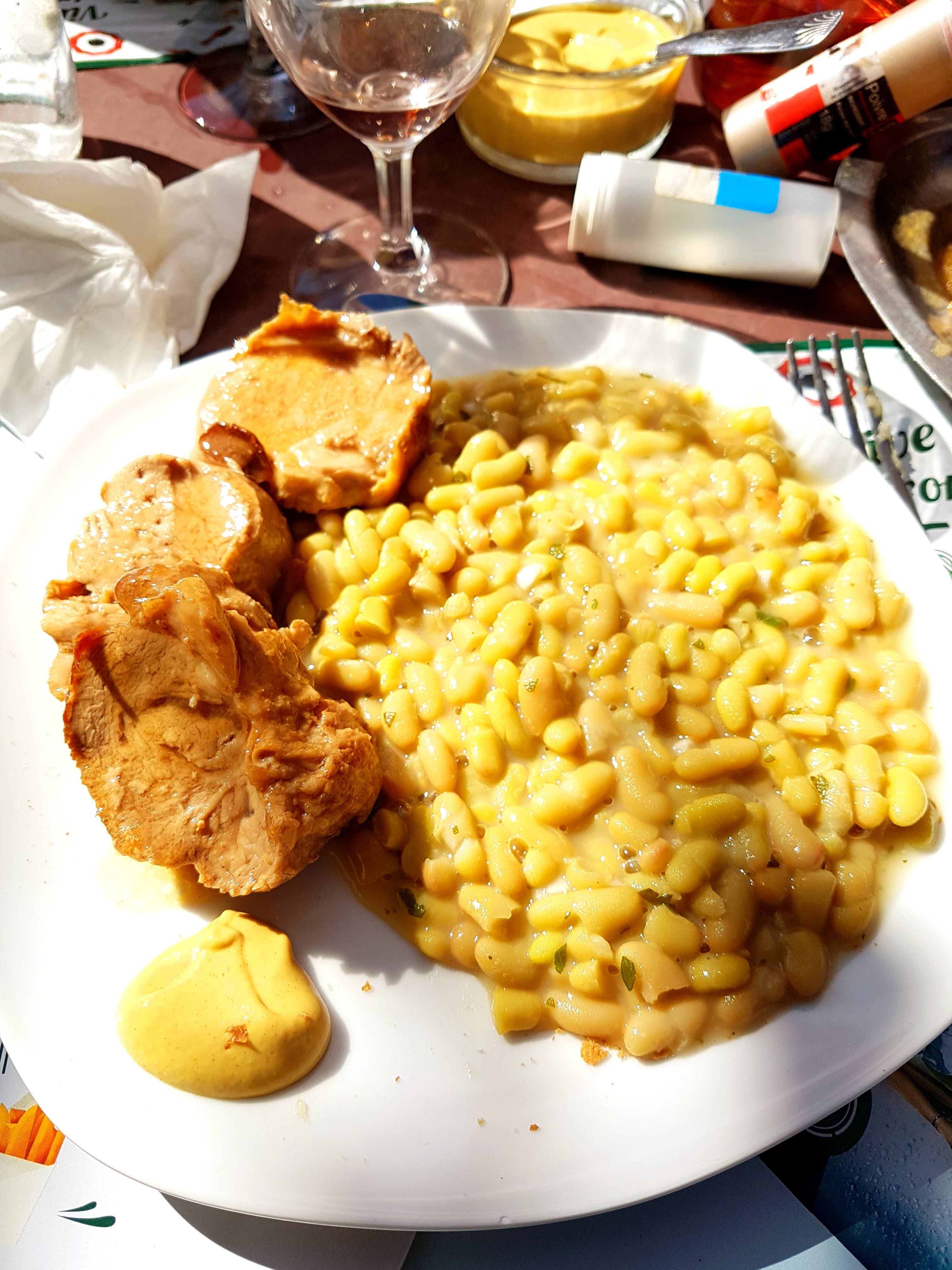 Repas complet avec vin et café. Servi en terrasse très agréable